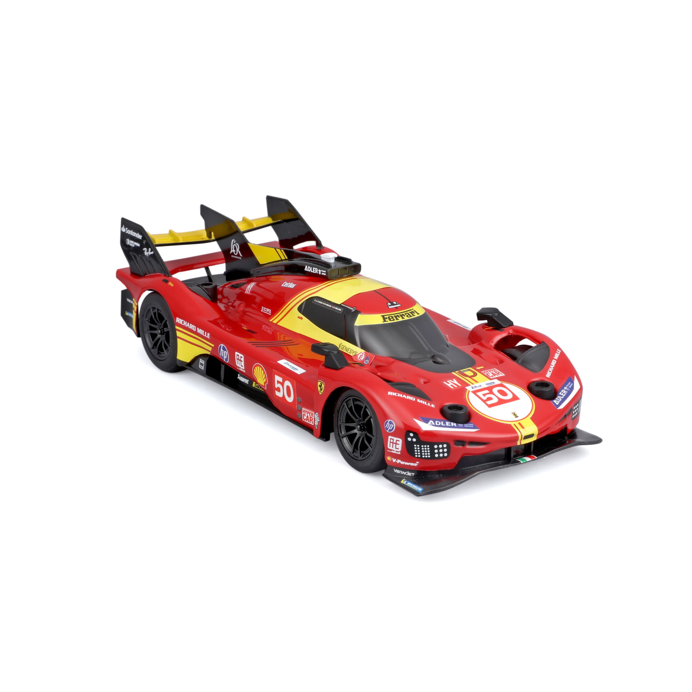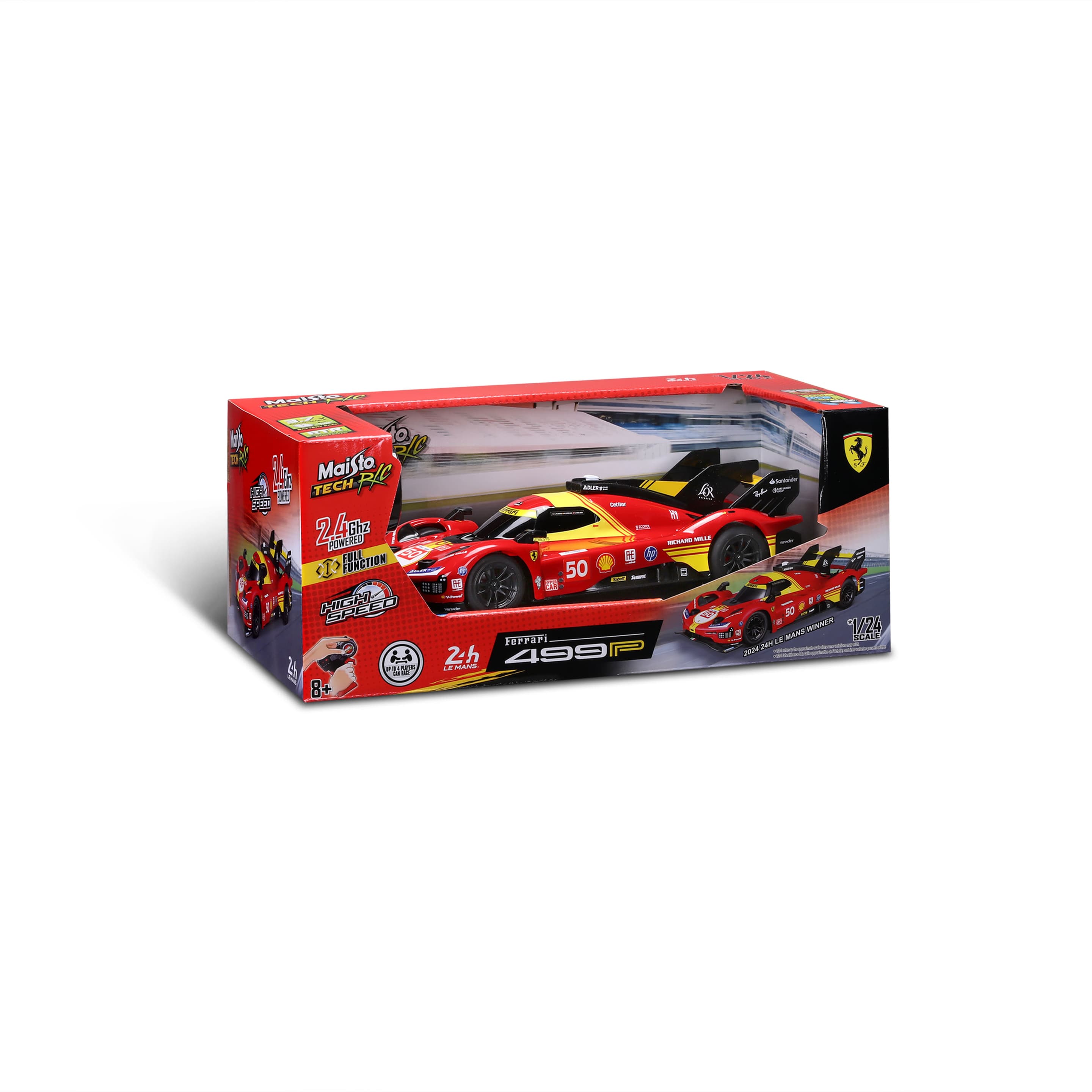 Der ferngesteuerte Ferrari 499P LeMans (2024) mit der Startnummer 50 von Maisto Tech R/C bietet Rennspaß für Fahrer jeden Alters. Der Wagen im Maßstab 1:24 verfügt über eine leicht zu bedienenden Mini Pro-Fernbedienung, authentische Rennteam-Lackierung, eine Frequenz von 2,4 GHz und eine Reichweite von ca. 35 m. Mit einer Geschwindigkeit von ca. 8 km/h ist dieses Auto ideal für Fahrer ab 5 Jahren geeignet. Im Lieferumfang sind Batterien und ein USB-Kabel enthalten. (1x Lithium-Akku für das Fahrzeug und 2x AAA für die Fernbedienung)