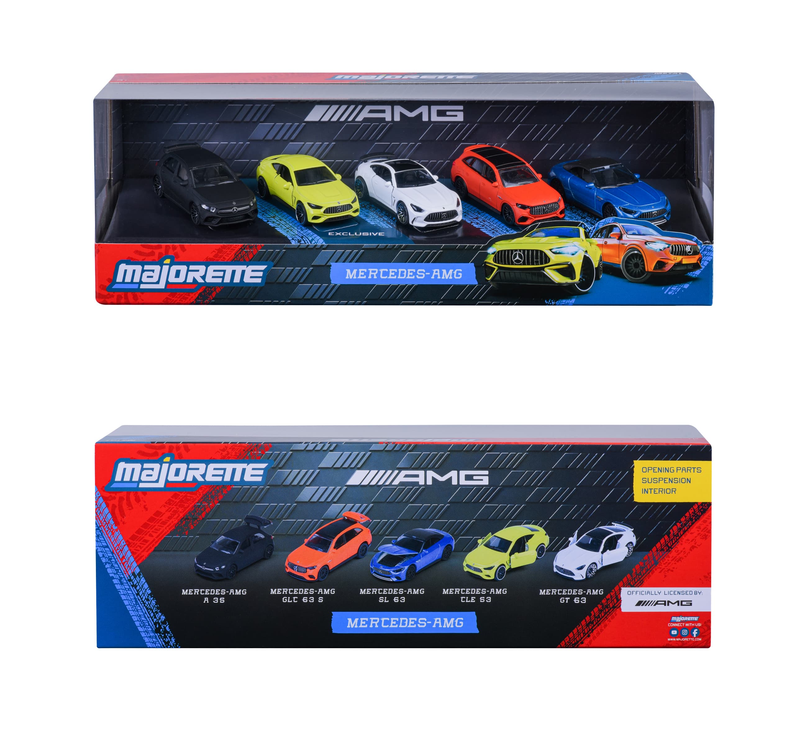Erleben Sie die Faszination der Mercedes-AMG Performance-Welt im Miniaturformat! Das Majorette Mercedes-AMG Geschenkset enthält fünf detailgetreue Modellautos im Maßstab 1:64, darunter exklusive AMG-Fahrzeuge wie der Mercedes-AMG GT R, Mercedes-AMG G 63, Mercedes-AMG A 45, Mercedes-AMG E 43 und ein Mercedes-AMG GT 4-Door Coupé. Jedes Modell überzeugt mit hochwertigen Freilauf-Funktionen, beweglichen Teilen und einer originalgetreuen Lackierung – ideal für Sammler und kleine Motorsport-Fans.