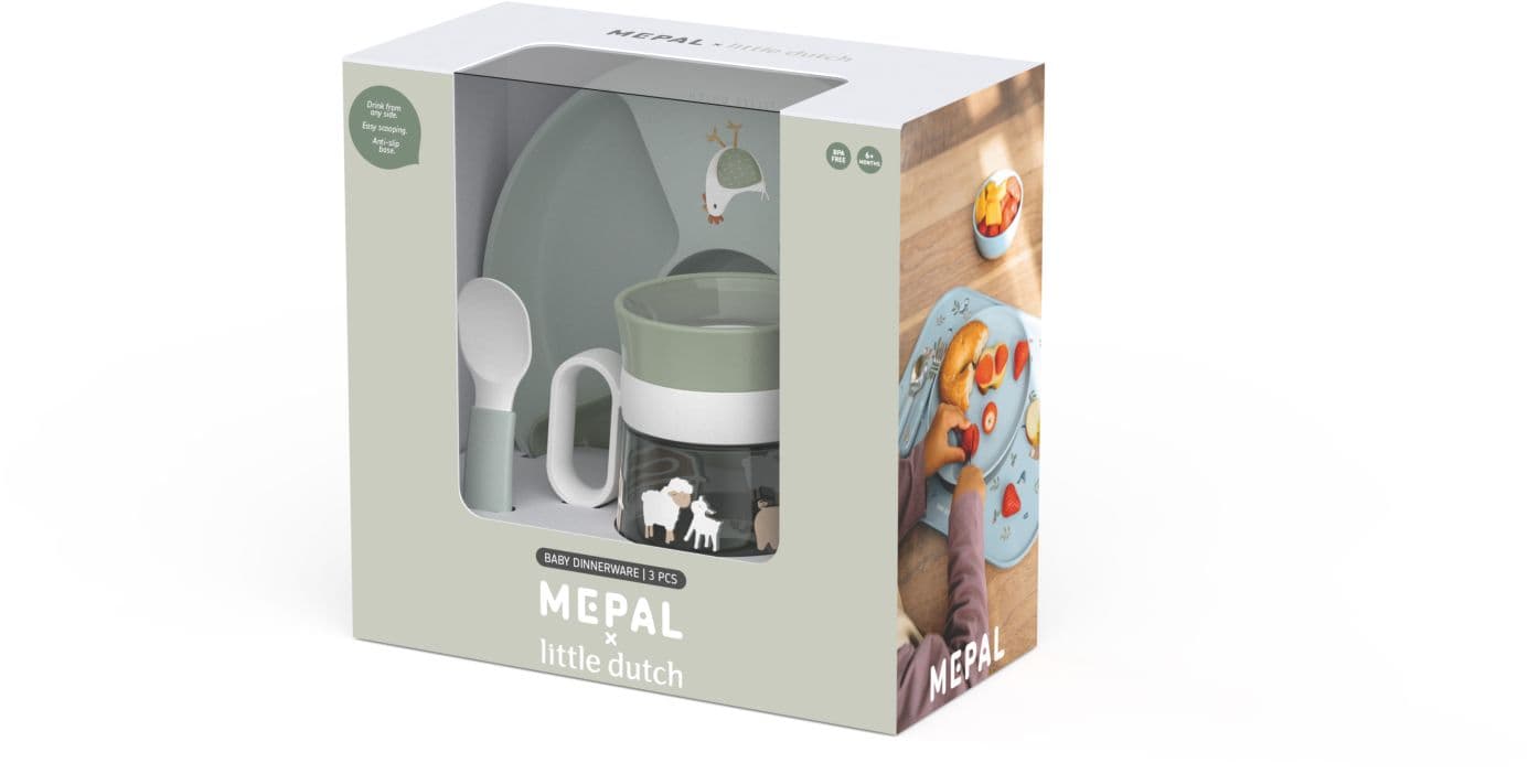 3-teiliges Baby-Set. Das Set besteht aus dem 360°-Trinklernbecher, einem Kinderteller mit Unterteilung und einem Lernlöffel.