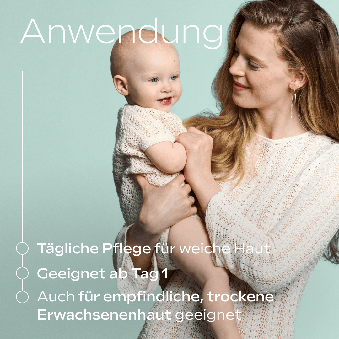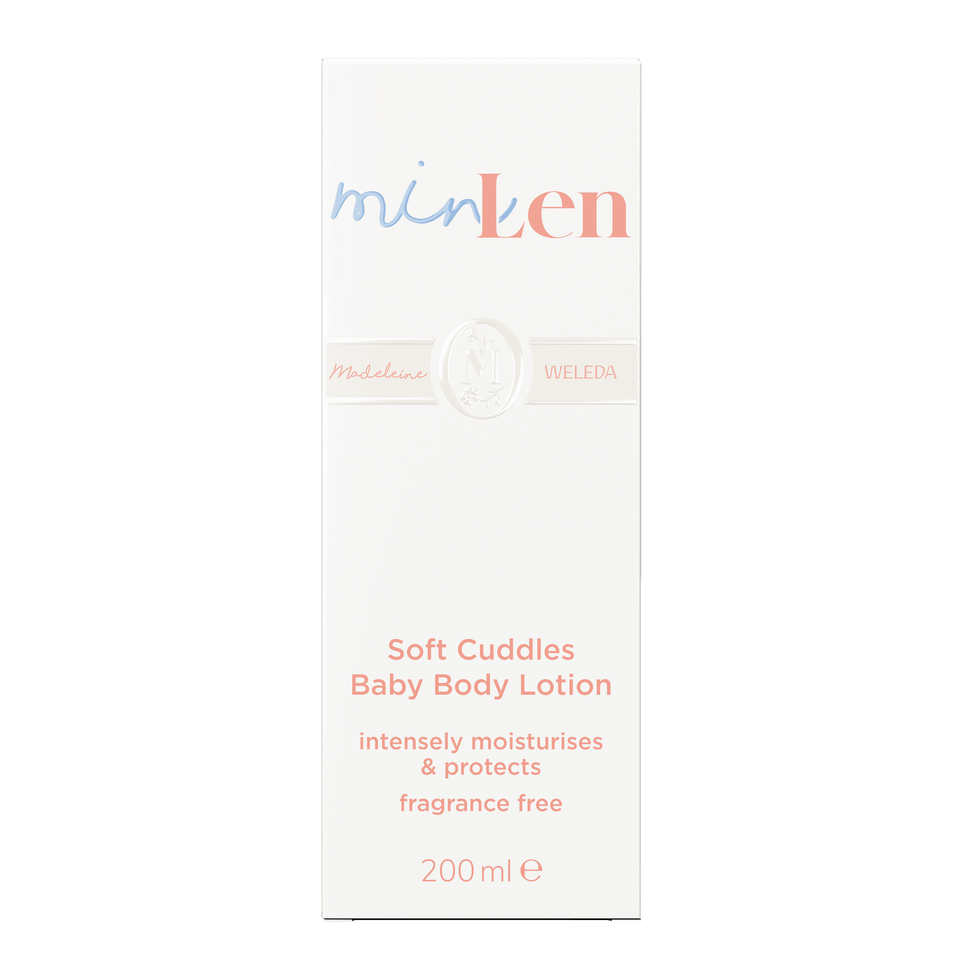 Wie eine sanfte Umarmung umhüllt die Pflege der Soft Cuddles Baby Body Lotion zarte und empfindliche Babyhaut. Ihre cremige Formel aus 100 % Inhaltsstoffen natürlichen Ursprungs beruhigt die Haut und verwöhnt sie mit wertvoller Feuchtigkeit. Die Hautbarriere wird geschützt. Schenk deinem Baby die reichhaltige Pflege der Soft Cuddles Baby Body Lotion nach dem Bad. Für eine zarte und samtweiche Haut.