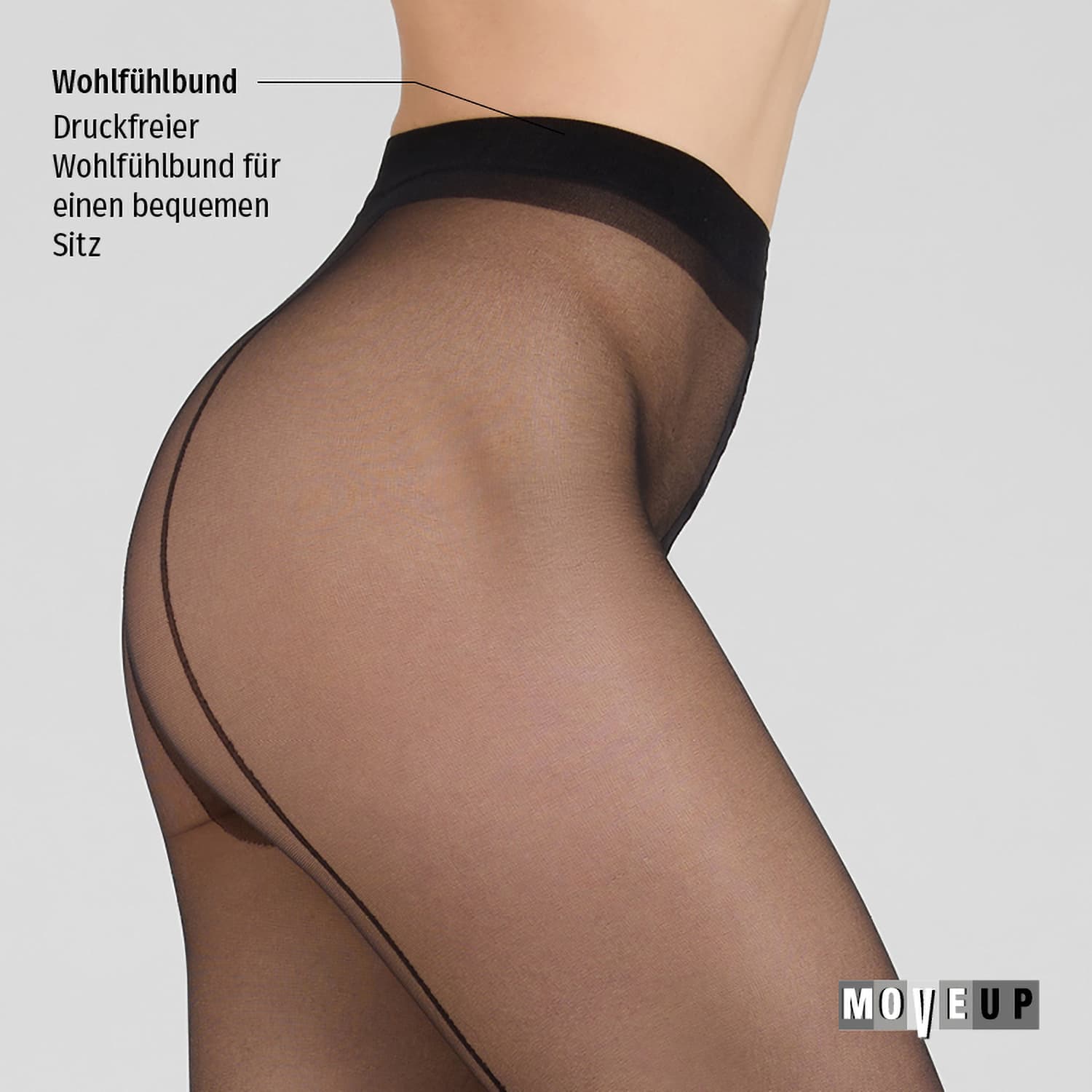 Die MOVE UP Feinstrumpfhose mit Naht verleiht jedem Outfit eine elegante Note. Mit ihrer feinen 20 DEN Optik sorgt sie für einen stilvollen und femininen Auftritt.