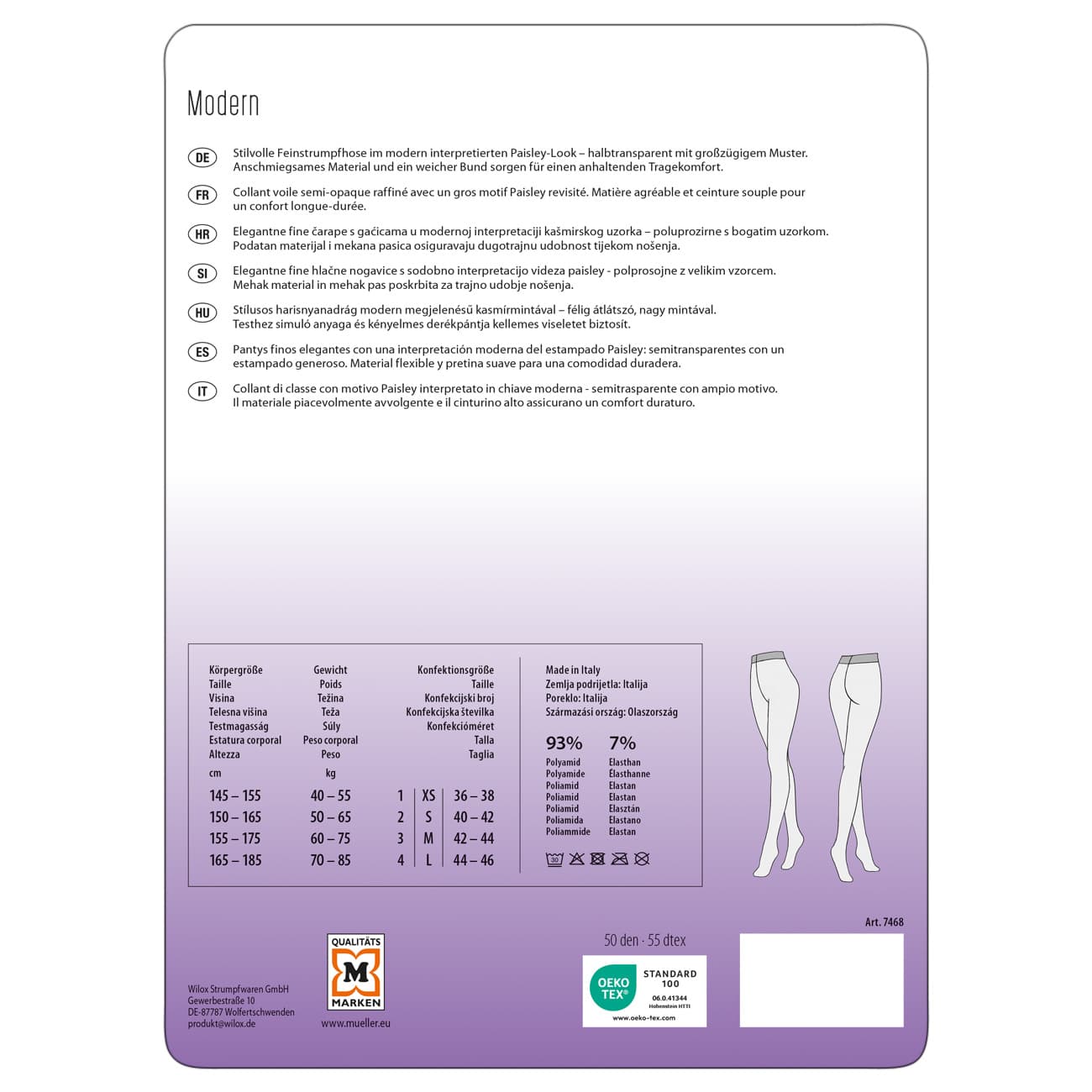 Stilvolle Feinstrumpfhose im modern interpretierten Paisley-Look – halbtransparent mit großzügigemMuster. Anschmiegsames Material und ein weicher Bund sorgen für einen anhaltenden Tragekomfort.