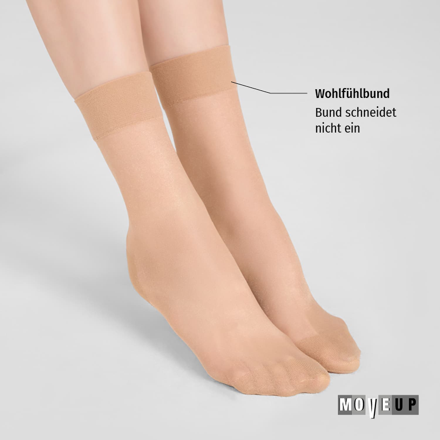 Die MOVE UP Damen Söckchen Satin Dream 20 DEN verleihen jedem Outfit eine elegante Note. Ihre zart schimmernde und hochtransparente Optik sorgt für ein ebenmäßiges Erscheinungsbild der Haut.