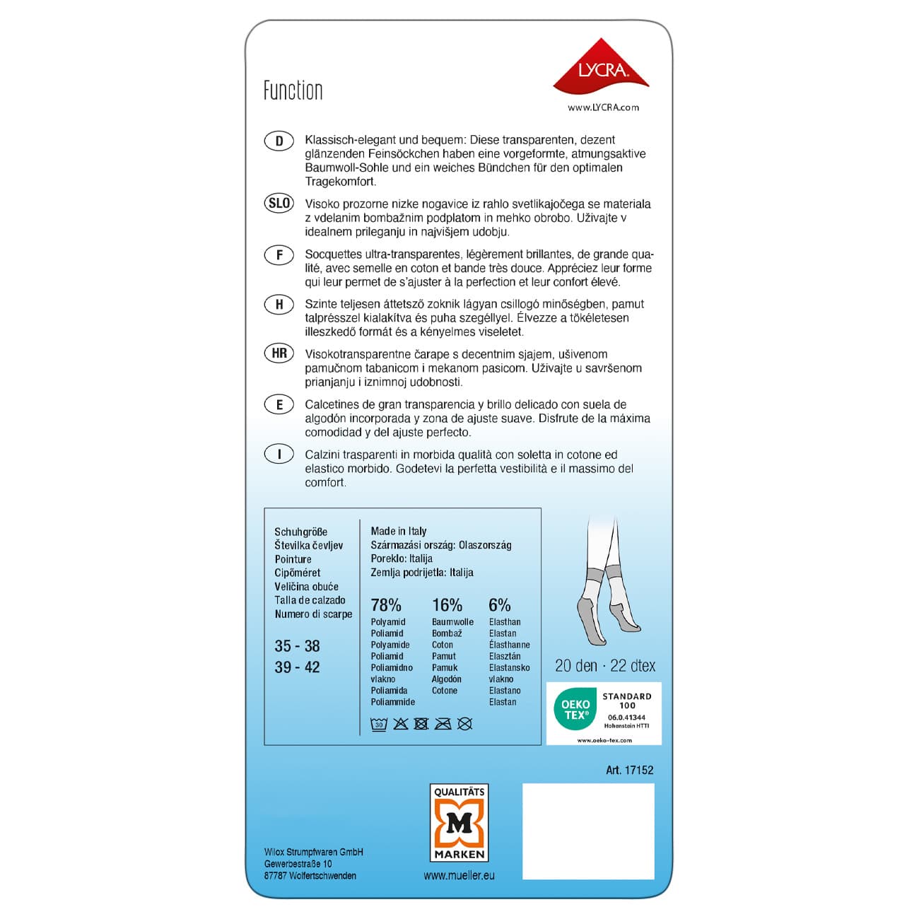 Hochtransparente Söckchen in zart schimmernder Qualität mit eingearbeiteter Baumwollsohle und weichen Bündchen. Genießen Sie perfekte Passform und höchsten Komfort.
