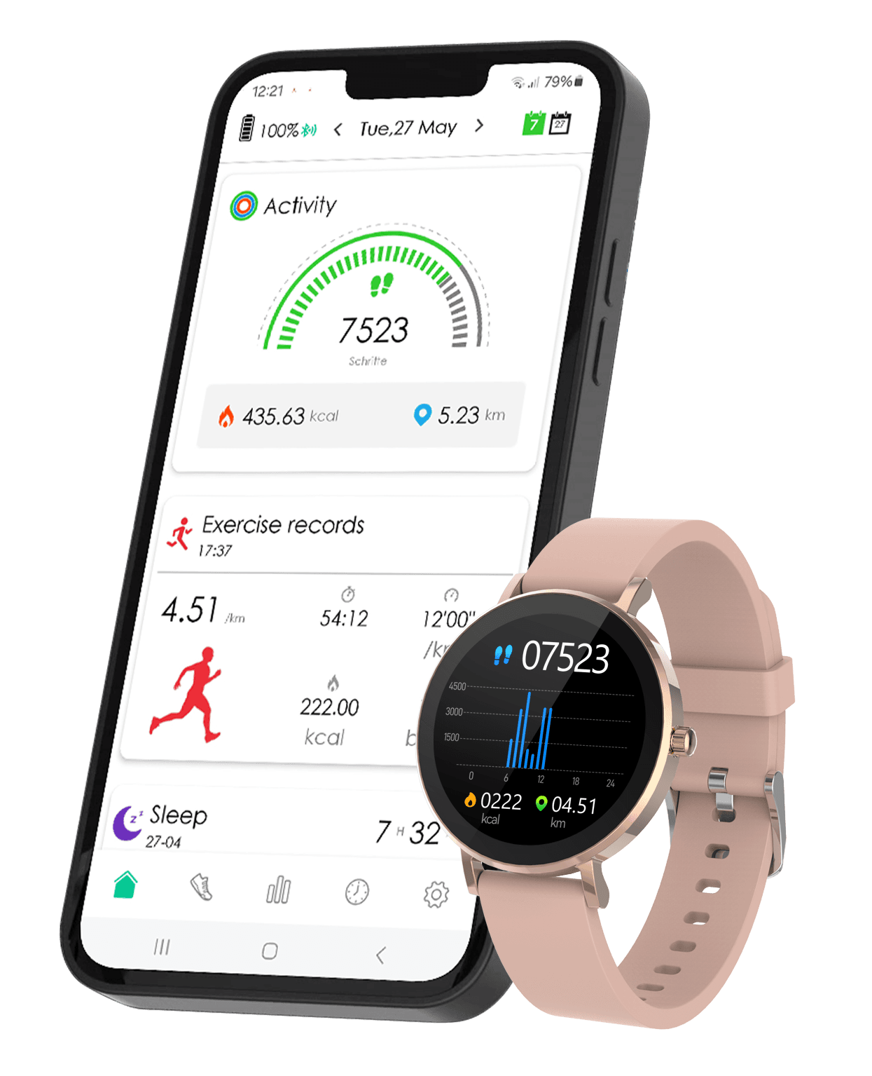 • von der Smartwatch in die kostenlose "MSmartfit" App