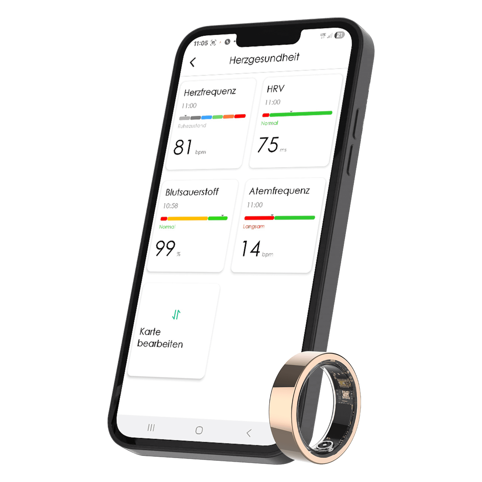 Verbinden Sie den Ring ganz einfach mit der MSmartfit App und erhalten Sie detaillierte Einblicke in Ihre Gesundheit – direkt auf dein Smartphone.