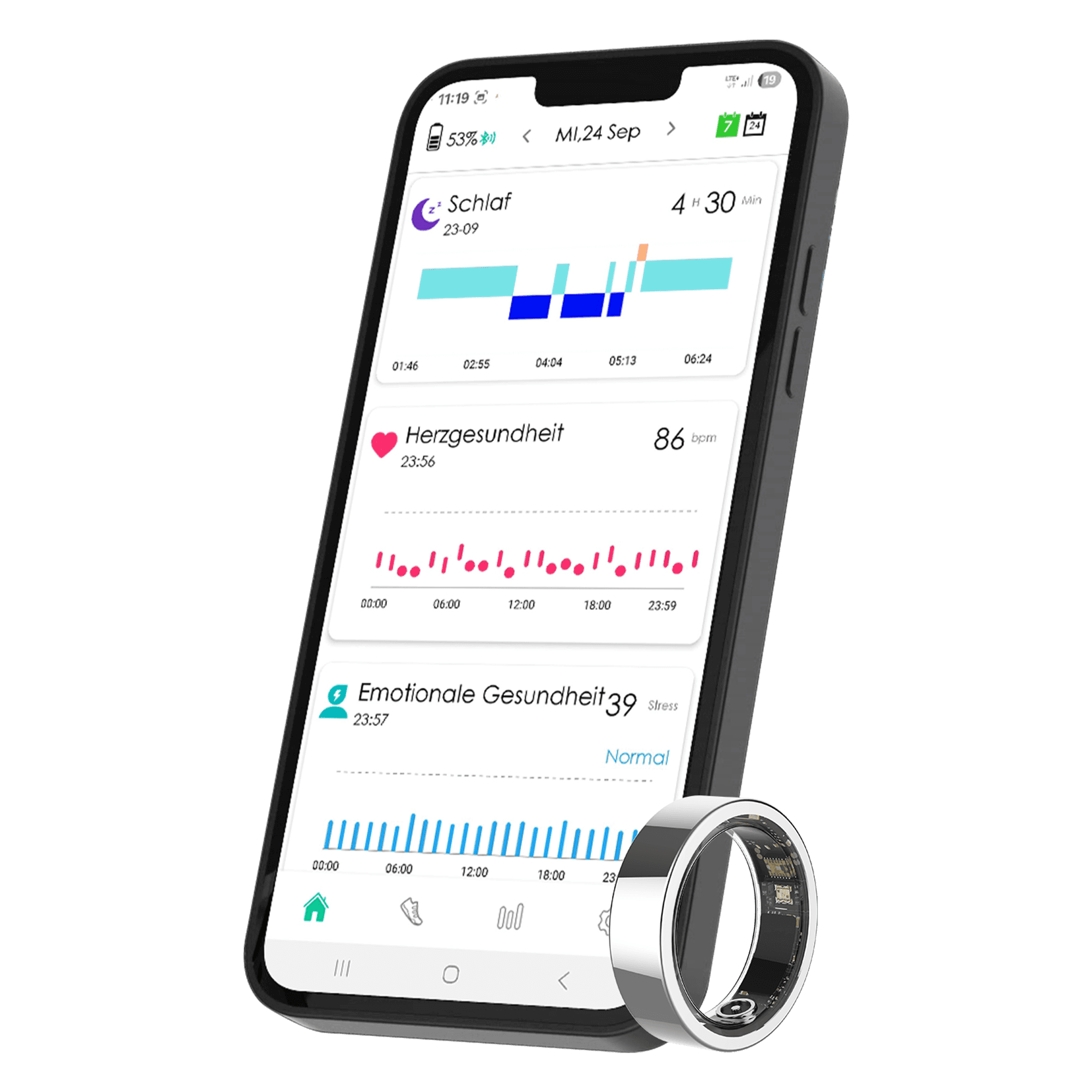 Verbinden Sie den Ring ganz einfach mit der MSmartfit App und erhalten Sie detaillierte Einblicke in Ihre Gesundheit – direkt auf dein Smartphone.