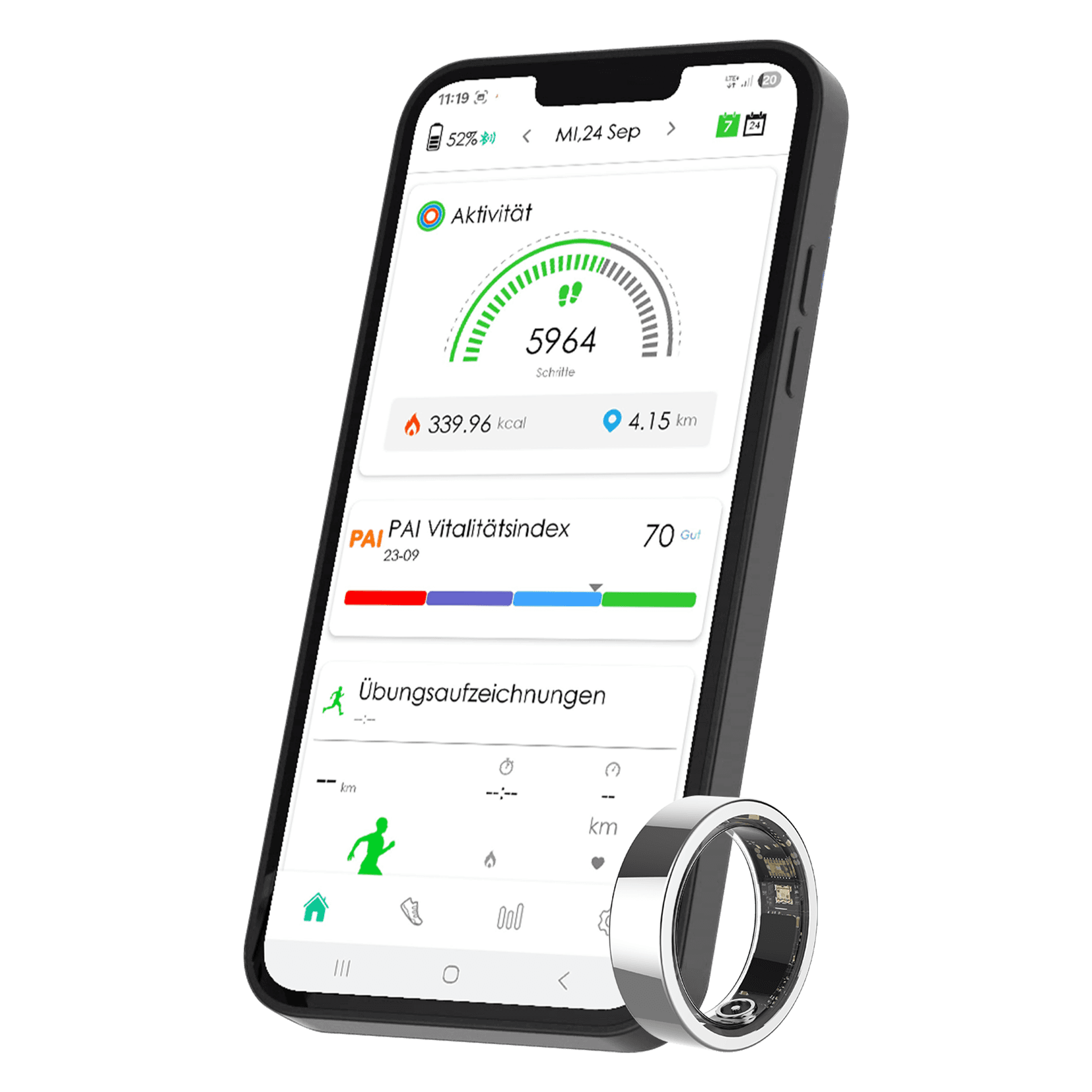 Verbinden Sie den Ring ganz einfach mit der MSmartfit App und erhalten Sie detaillierte Einblicke in Ihre Gesundheit – direkt auf dein Smartphone.