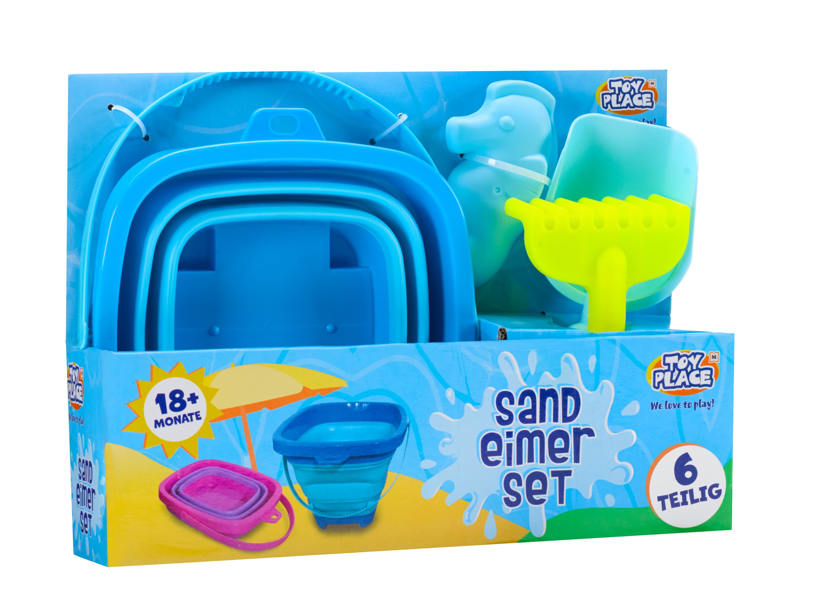 Das faltbare Sandeimer Set von TOY PLACE ist für kreative Spielstunden im Sandkasten oder am Strand geeignet und für Kinder ab 18 Monaten konzipiert. Dank des faltbaren Eimers lässt sich das gesamte Spielzeug platzsparend verstauen und transportieren.