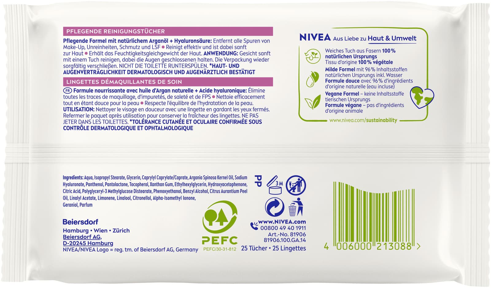NIVEA Reinigungstücher Pflegend natürliches Arganöl + Hyaluronsäure