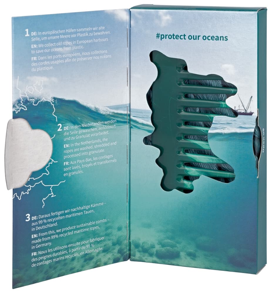 Niyok Lockenkamm aus recycelten Tauen entwirrt dichtes und gelocktes Haar schonend.