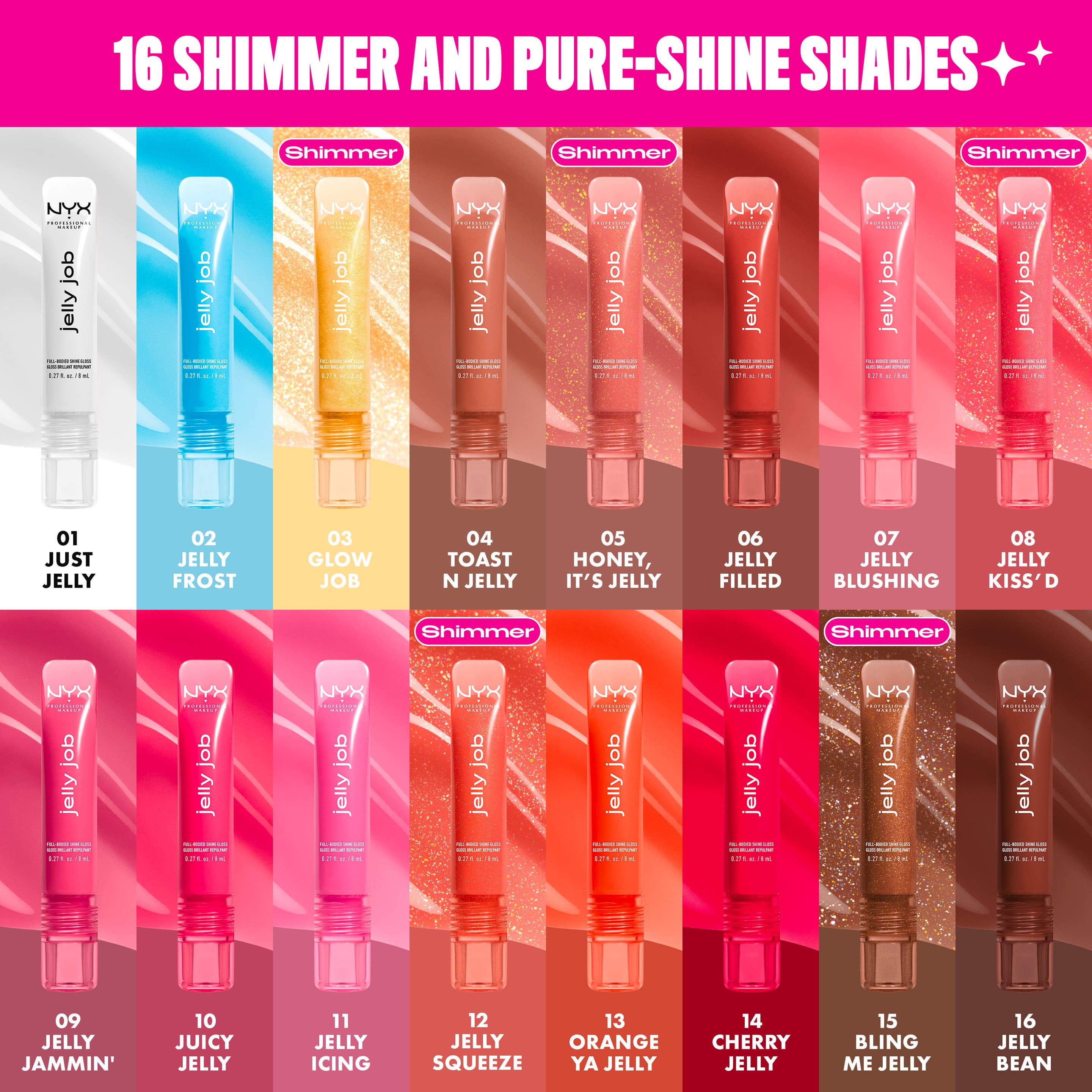 Finde dein perfect match aus unseren 16 jell-icious Shades, sowohl mit Schimmer als auch in reinem Glanz-Finish. Von subtilen Nude-Tönen und verspielten Rosas über schillernde Glitzer bis hin zu kühnen Rottönen – Jelly Job hat den perfekten Ton für jede Stimmung und jeden Anlass!