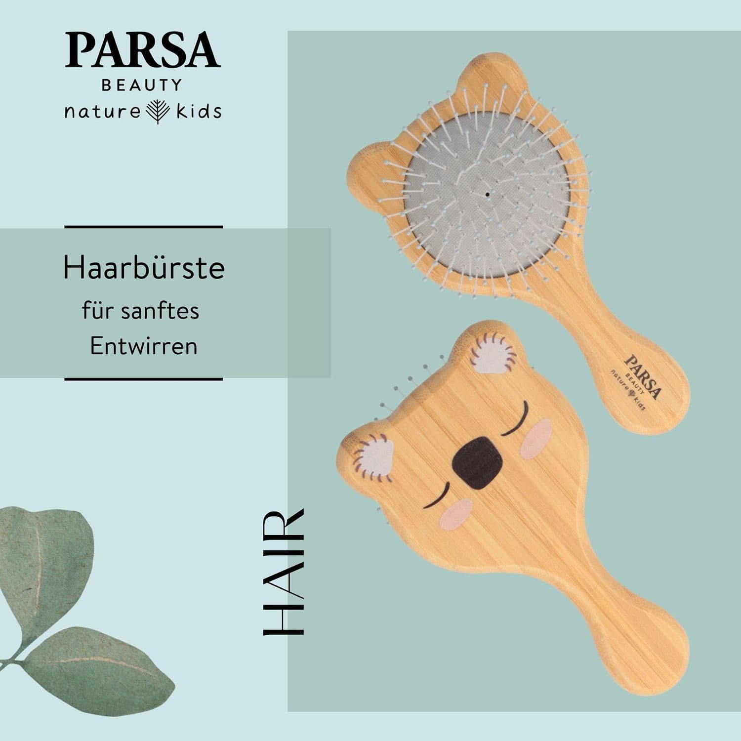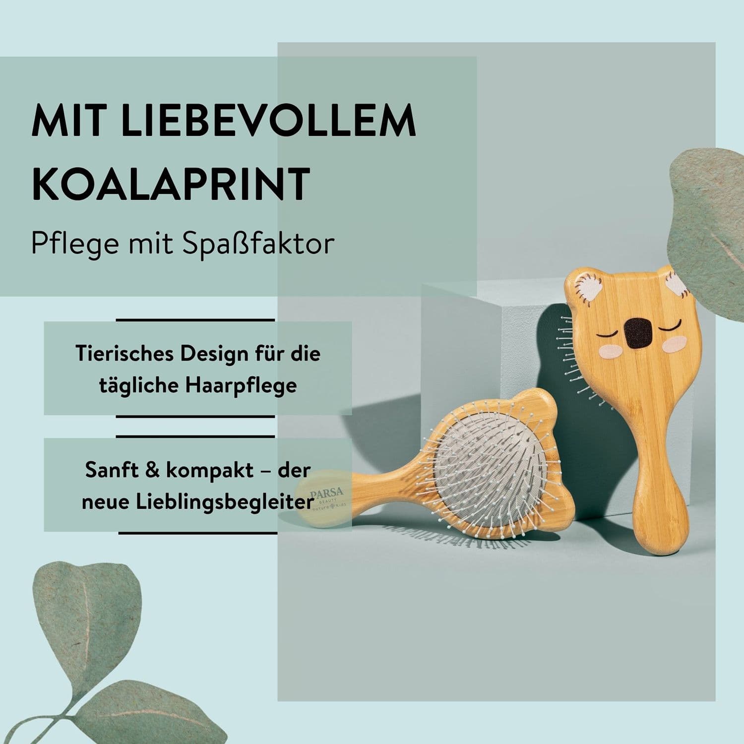 Die PARSA Beauty Nature Kids Wet & Dry Entwirrbürste im niedlichen Koala-Design macht das Kämmen von nassem und trockenem Haar zu einem angenehmen Erlebnis.