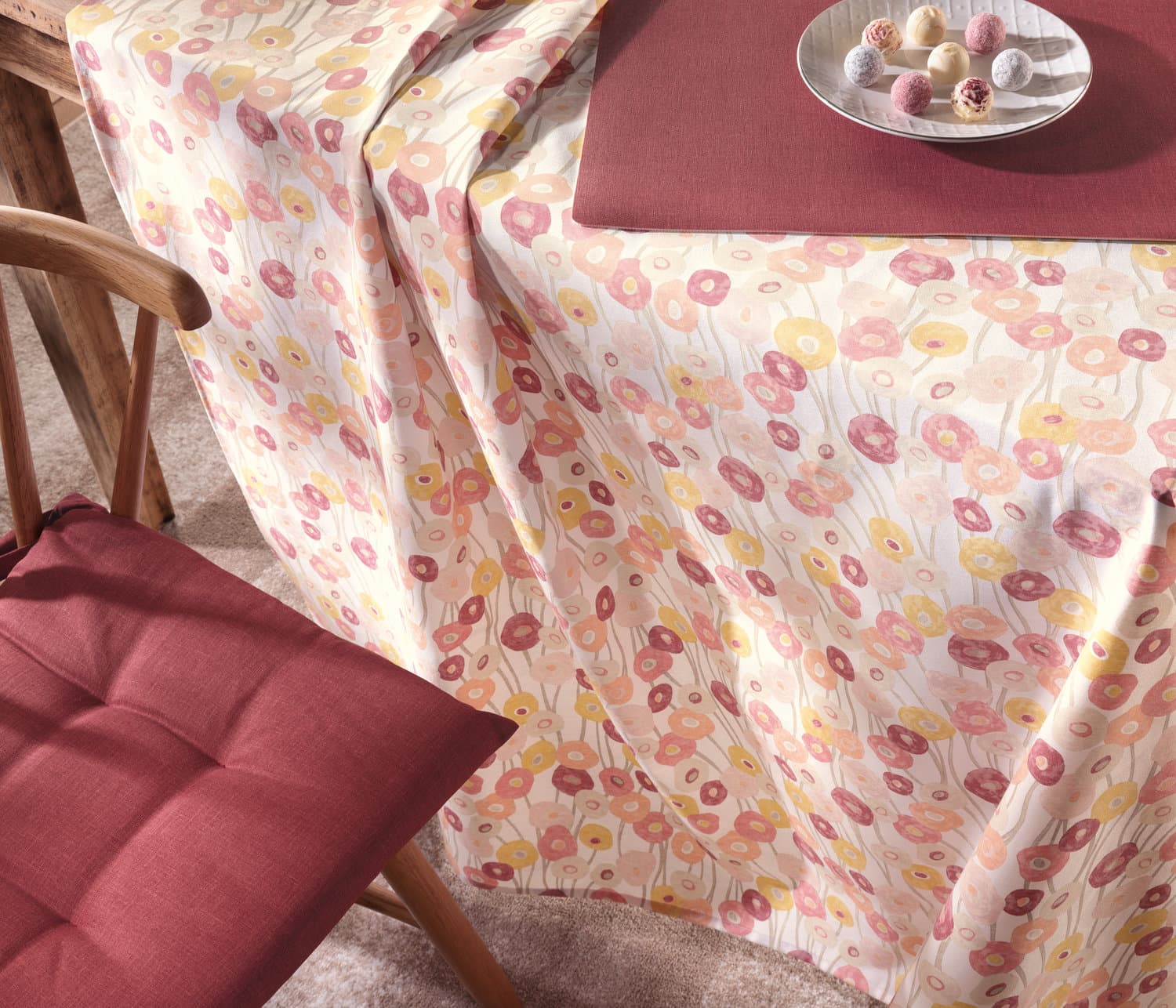 Diese Tischdecke schützt den Tisch und sieht dabei schön aus. Sie liegt glatt auf dem Tisch. Ideal für den täglichen Gebrauch zu Hause.