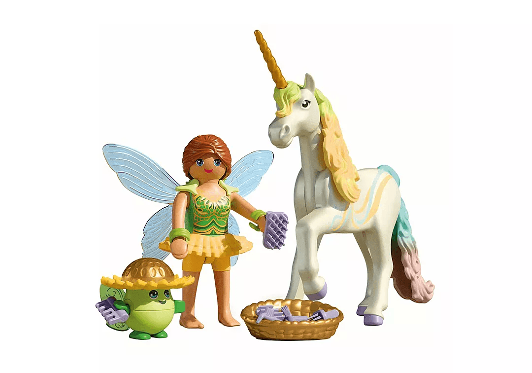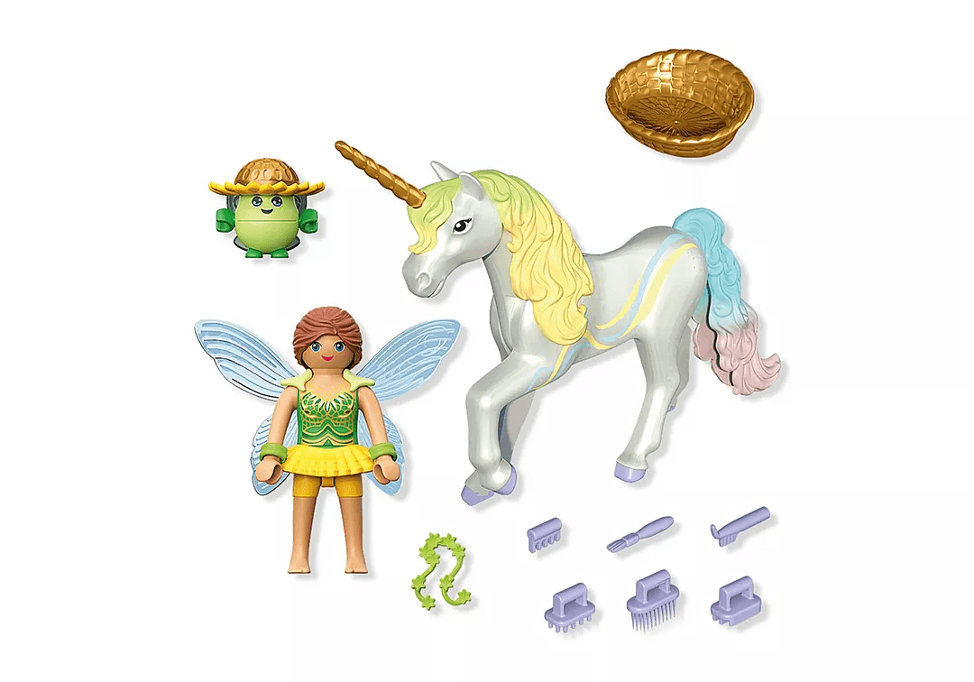 Besonders kreativ: Mähne, Schweif und Horn des Einhorns sind austauschbar und lassen sich mit anderen Einhörnern der Serie kombinieren – für individuelle Einhorn-Kreationen! Mit liebevollen Accessoires wie Striegelset, Korb, Flügeln und Feenschmuck ist dieses Set ideal für fantasievolle Rollenspiele und glitzernde Spielstunden.