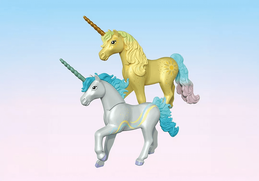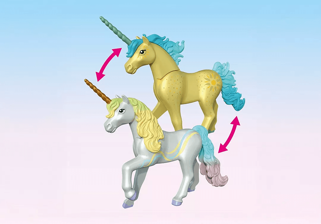 Willkommen im Regenbogenreich! Das Sammel-Einhorn Regenbogenblume aus der Playmobil Magic Unicorns-Serie verzaubert mit seiner schillernden Präsenz und bringt Farbe und Hoffnung ins Einhorn-Königreich. Gemeinsam mit ihrer Feenfreundin und dem fröhlichen Joyling sorgt Regenbogenblume für magische Momente voller Fantasie und Freundschaft.