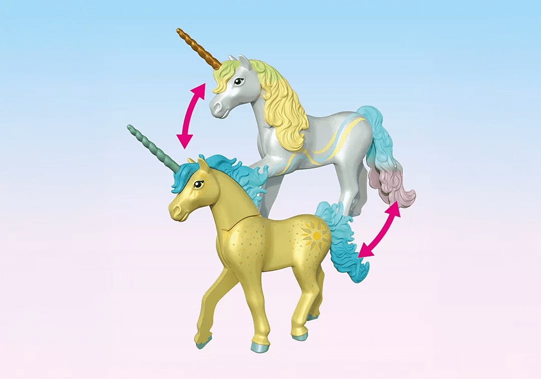 Willkommen in der Welt der Magie und des Lichts! Das Sammel-Einhorn Sonnenscheinblüte aus der Playmobil Magic Unicorns-Serie bringt mit seinem fröhlichen Wesen Licht und Wärme in jede Spielwelt. Gemeinsam mit ihrer bezaubernden Feenfreundin und dem niedlichen Joyling sorgt Sonnenscheinblüte für herzerwärmende Abenteuer und fantasievolle Geschichten.