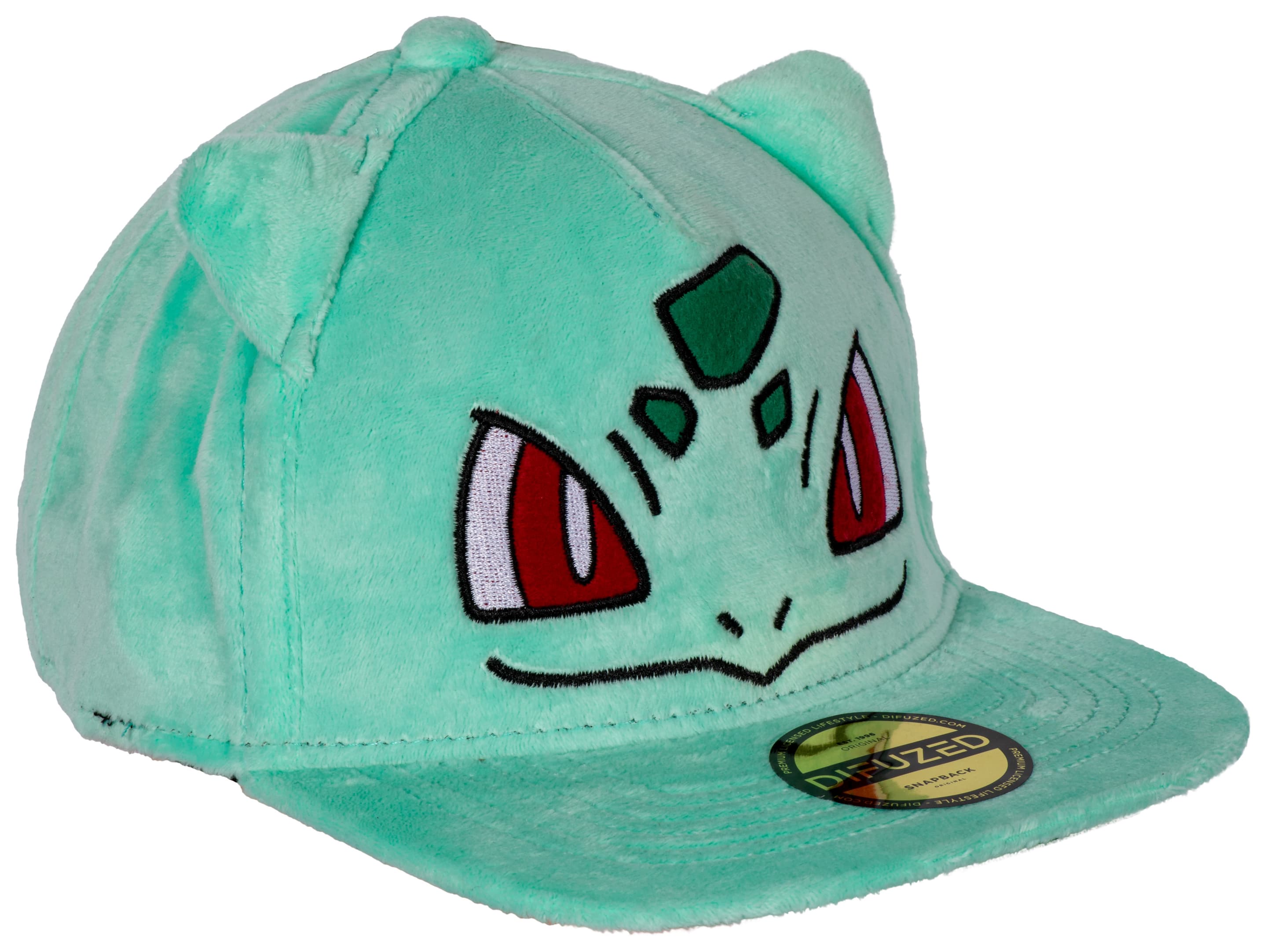 Wenn du Pokémon liebst, darfst du dir diese fantastische, verstellbare Baseballkappe mit Snapback, in Form von Bisasam, nicht entgehen lassen! Die beiden spitzen Öhrchen sind ein echter Hingucker und durch den Snapbackverschluss kann die Kappe in Einheitsgröße individuell eingestellt werden."