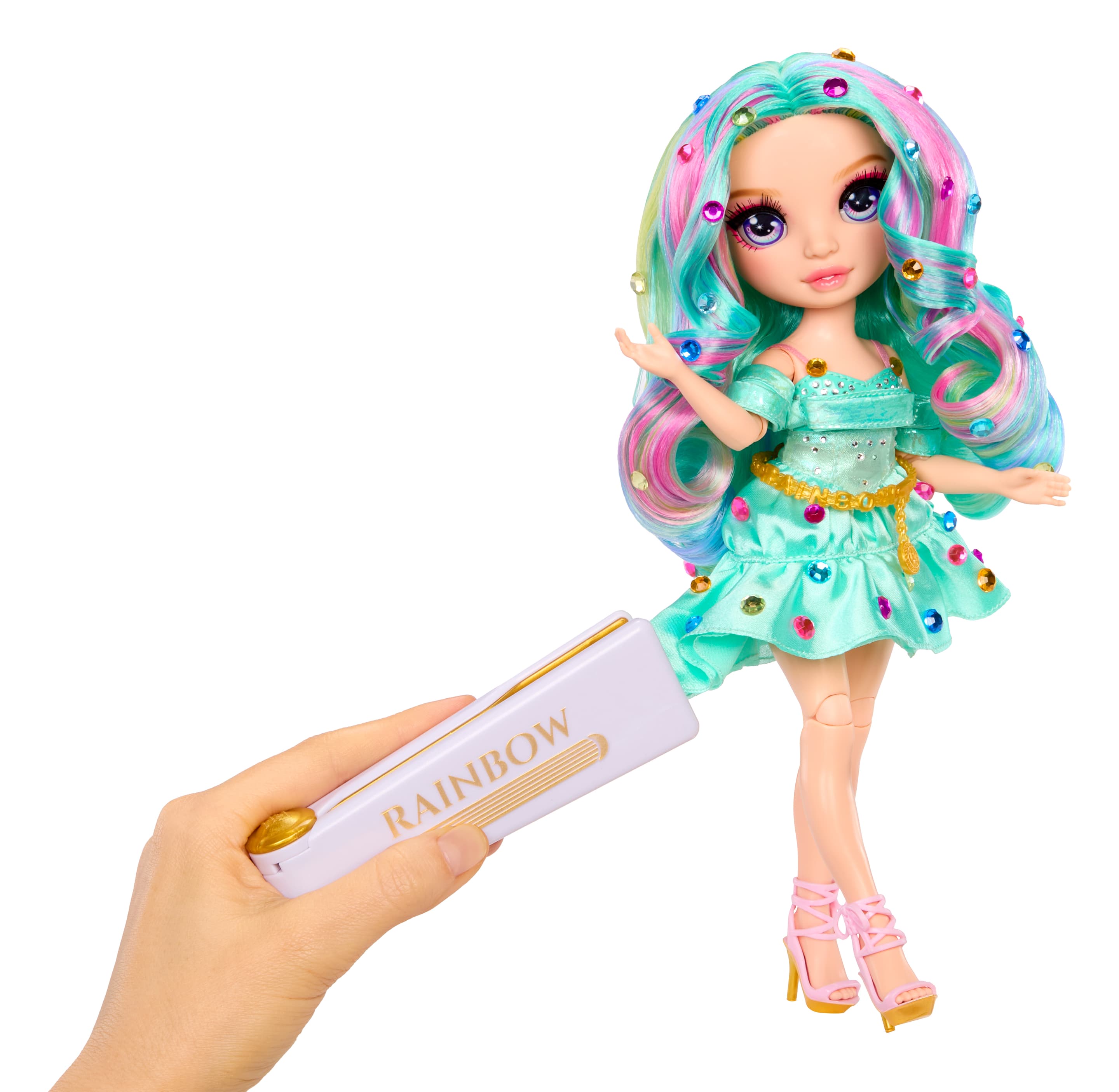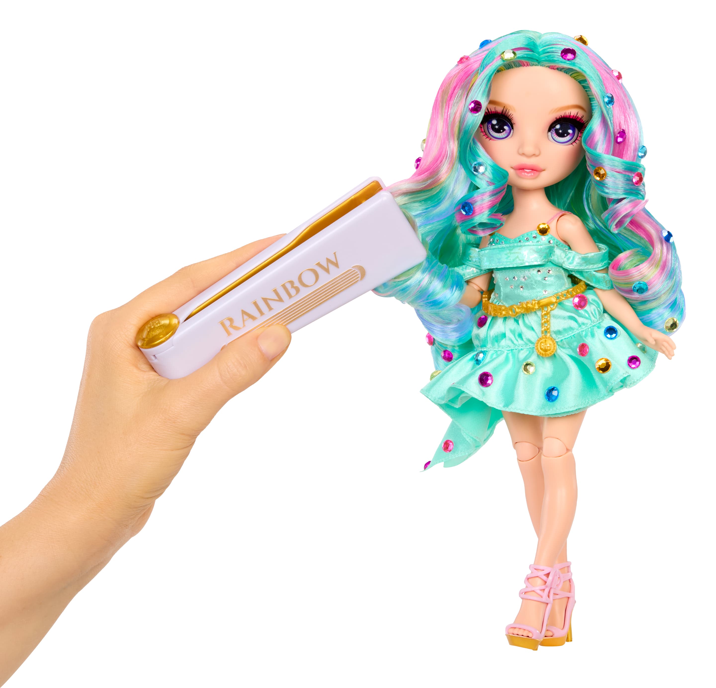 Entdecke eine neuen, bezaubernden Charakter und tauche ein in eine funkelnde Spielwelt voller Kreativität! Mit dem Glätteisen lassen sich glitzernde Steinchen ganz einfach an Haaren oder Kleidung befestigen, wodurch zauberhafte Looks und fantasievolle Stylings entstehen. Auch für dich!