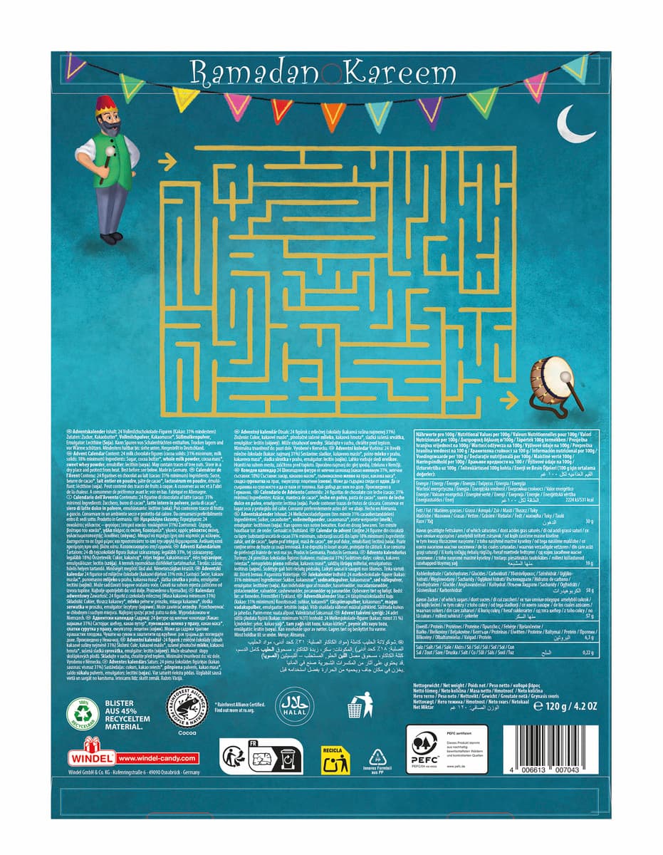 Der Ramadan Kalender begleitet Groß und Klein durch die gesamte Fastenzeit – mit 30 kleinen Schoko-Überraschungen, die jeden Tag ein Genussmoment schenken. Gefüllt mit feiner Vollmilchschokolade (mind. 31 % Kakaoanteil), ist dieser Kalender eine liebevolle Art, die Besinnlichkeit und Vorfreude des Ramadans zu zelebrieren.