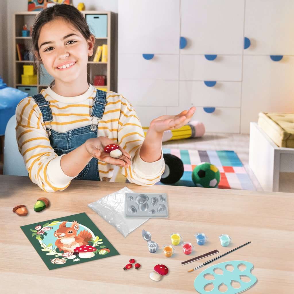 Das Liebe Eichhörnchen, zusammen mit den dekorativen Gipselementen Pilze, Hagebutte und Eichel, ist ein wunderbares Geschenk für alle kreativen Köpfe und Bastelbegeisterten