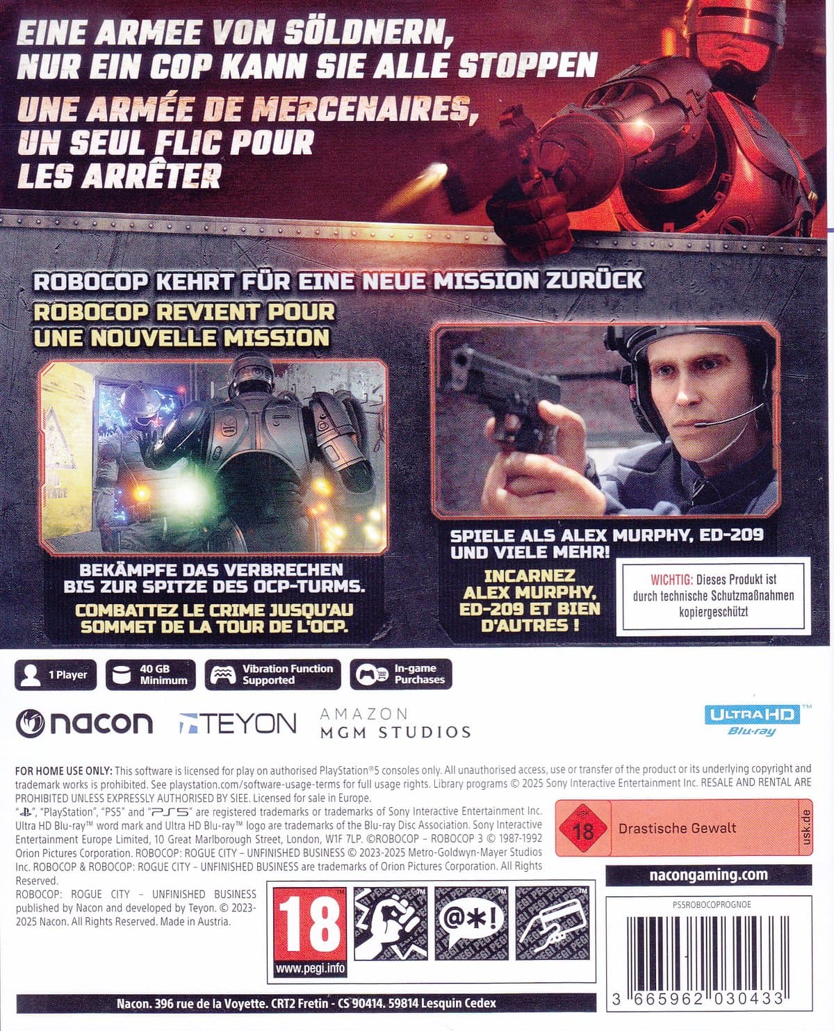 • Spiele zum ersten Mal als Alex Murphy mit dem übermächtigen ED-209 in spannenden Missionen.