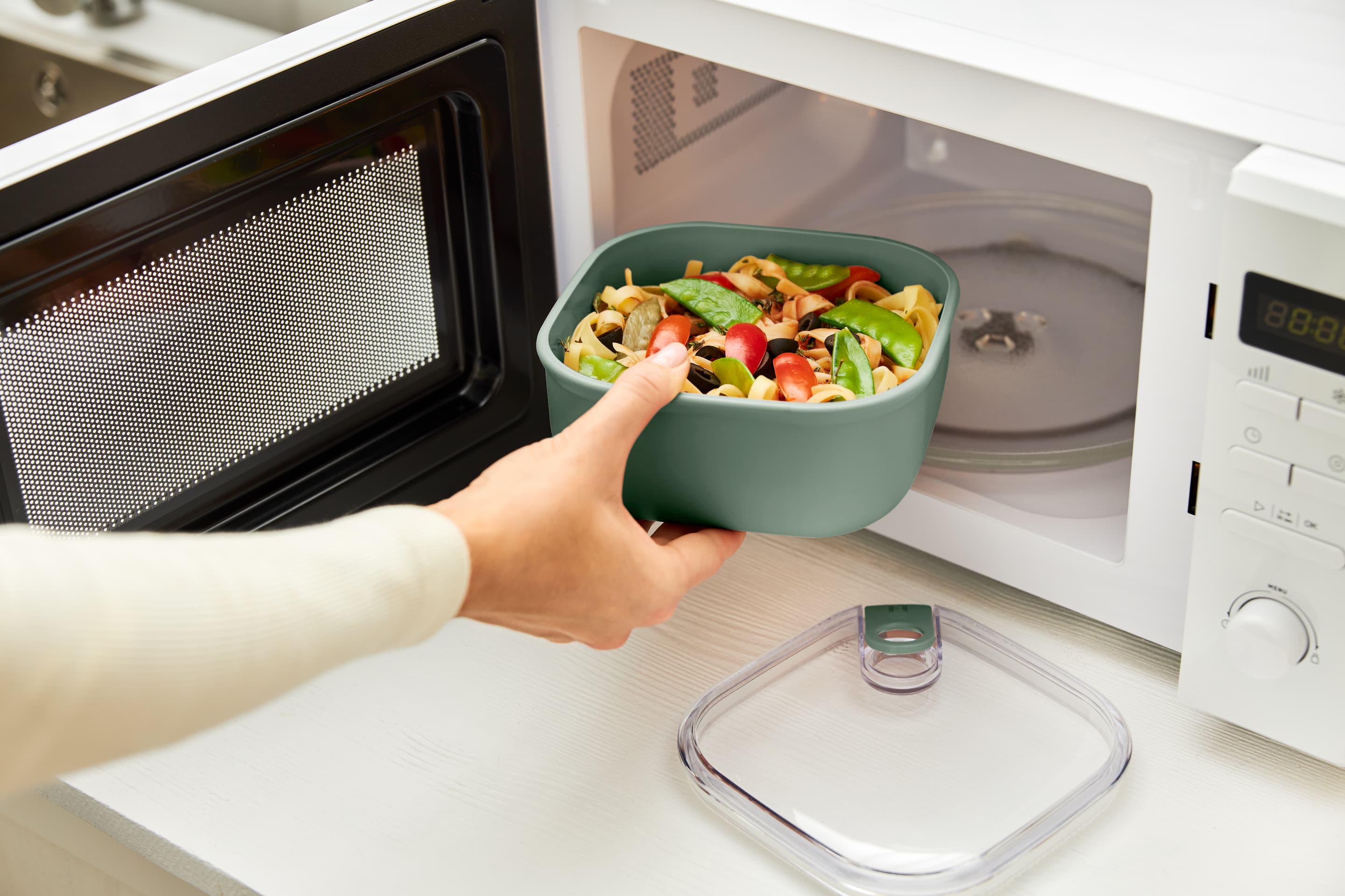 - Für die Verwendung in Mikrowellen ohne Deckel geeignet