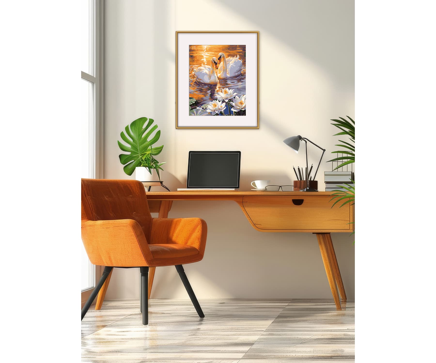 Ein stimmungsvoller Sonnenuntergang spiegelt sich im Wasser, während zwei Schwäne lautlos ihre Bahnen ziehen. Zwischen sanften Wellen und leuchtenden Seerosen entsteht ein harmonisches Bild voller Ruhe und Verbundenheit. Das Motiv fängt diesen besonderen Moment in warmen Gold- und Naturtönen ein – ideal für alle, die gerne kreativ abschalten und dabei Schritt für Schritt ein beeindruckendes Kunstwerk erschaffen möchten. Produktdetails: Besonderheiten: Leinstrukturierte Maltafel im Format 24 x 30 cm für einen natürlichen Malgrund. Die 24 individuell vorgemischten Acrylfarben auf Wasserbasis ermöglichen präzise Farbverläufe und ein lebendiges Ergebnis. Altersempfehlung: ab 12 Jahren Genre: Tiere, Landschaften Größe: 24 x 30 cm Artikelnummer: 609240923 Lieferumfang: • 24 Acrylfarben (wasserlöslich, schnelltrocknend und lichtecht) • 1 leinstrukturierte Maltafel • 1 Künstlerpinsel • 1 ausführliche Malanleitung • 1 Kontrollblatt