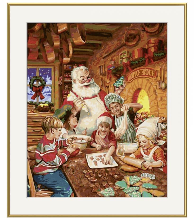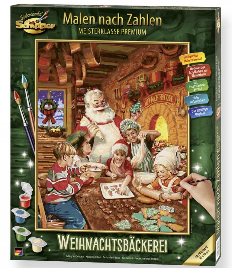 „In der Weihnachtsbäckerei“ ist der Titel eines bekannten Kinderlieds, das die Atmosphäre der vorweihnachtlichen Saison so gut einfängt, wie es dieses stimmungsvolle Bild auch tut. Der Duft von Lebkuchengewürzen mischt sich mit dem Knistern des Feuers und dem Lachen der Kinder, während der Weihnachtsmann Plätzchen in den Ofen schiebt. Das Motiv bringt den Hobbymaler zurück in eine Zeit, die lange vergangen und doch immer verbunden mit der Sehnsucht nach dem Frieden der Vorweihnacht ist.Das Bildformat und Malvorlage:“MEISTERKLASSE Premium”. Bilder im Hoch- oder Querformat von 40 x 50 cm, neben- oder untereinander gruppiert, eignen sich besonders gut für eine Bildergalerie. Die Malvorlage hat eine fühl- und sichtbare Leinenstruktur. Sie bewirkt nicht nur eine wesentlich verbesserte Optik des fertigen Gemäldes, sondern unterstreicht auch den malerischen Charakter des Bildes und unterstützt den gewünschten “Öl-auf-Leinwand-Effekt”.Der Packungsinhalt:Stabiler Malkarton mit Leinenstruktur 40 x 50 cm. Exakte Konturenzeichnungen mit gut lesbaren Zahlen. Acrylfarben auf Wasserbasis. Kein Farbmischen erforderlich. Feiner Malpinsel. Kontrollblatt und ausführliche Anleitung für erfolgreiches Malen.