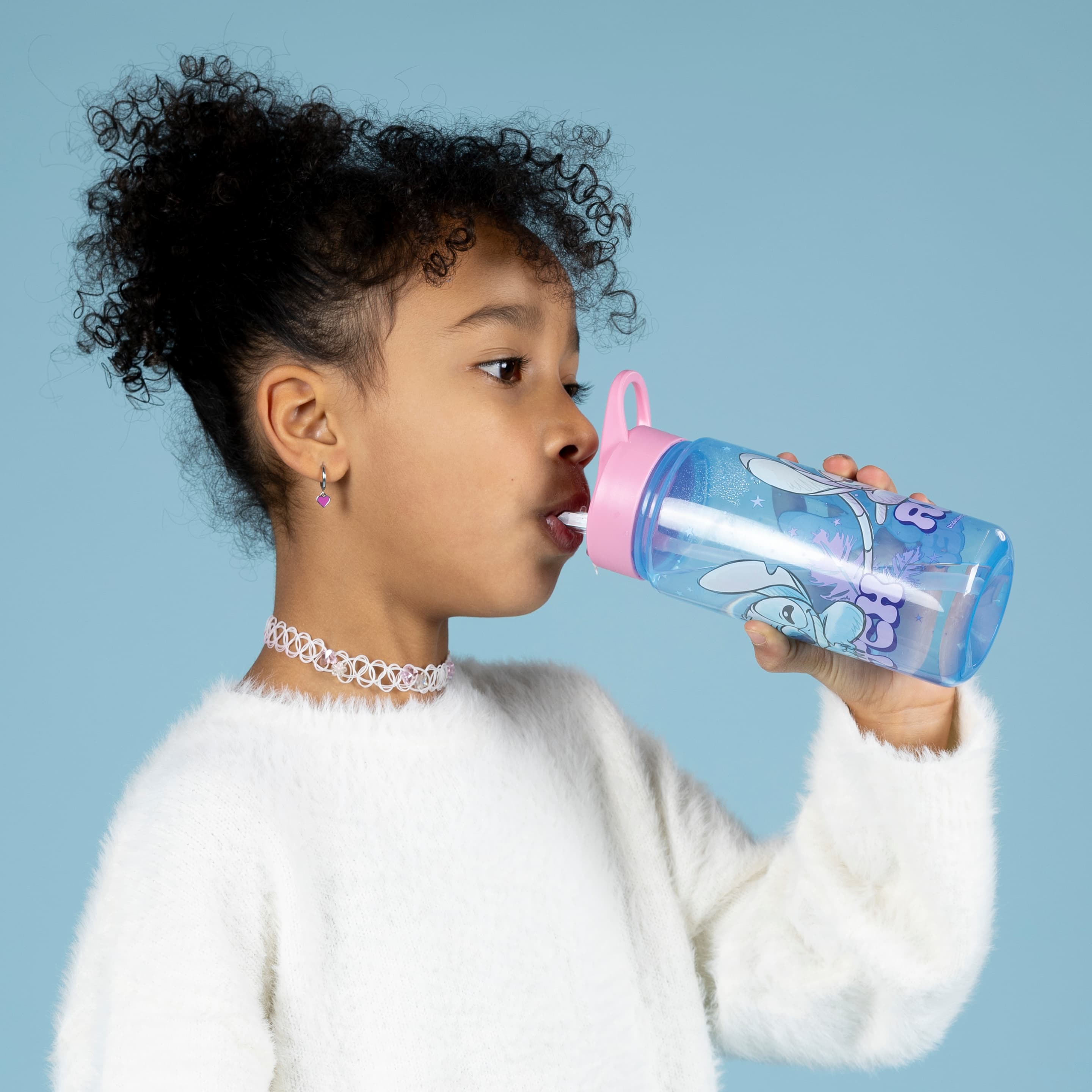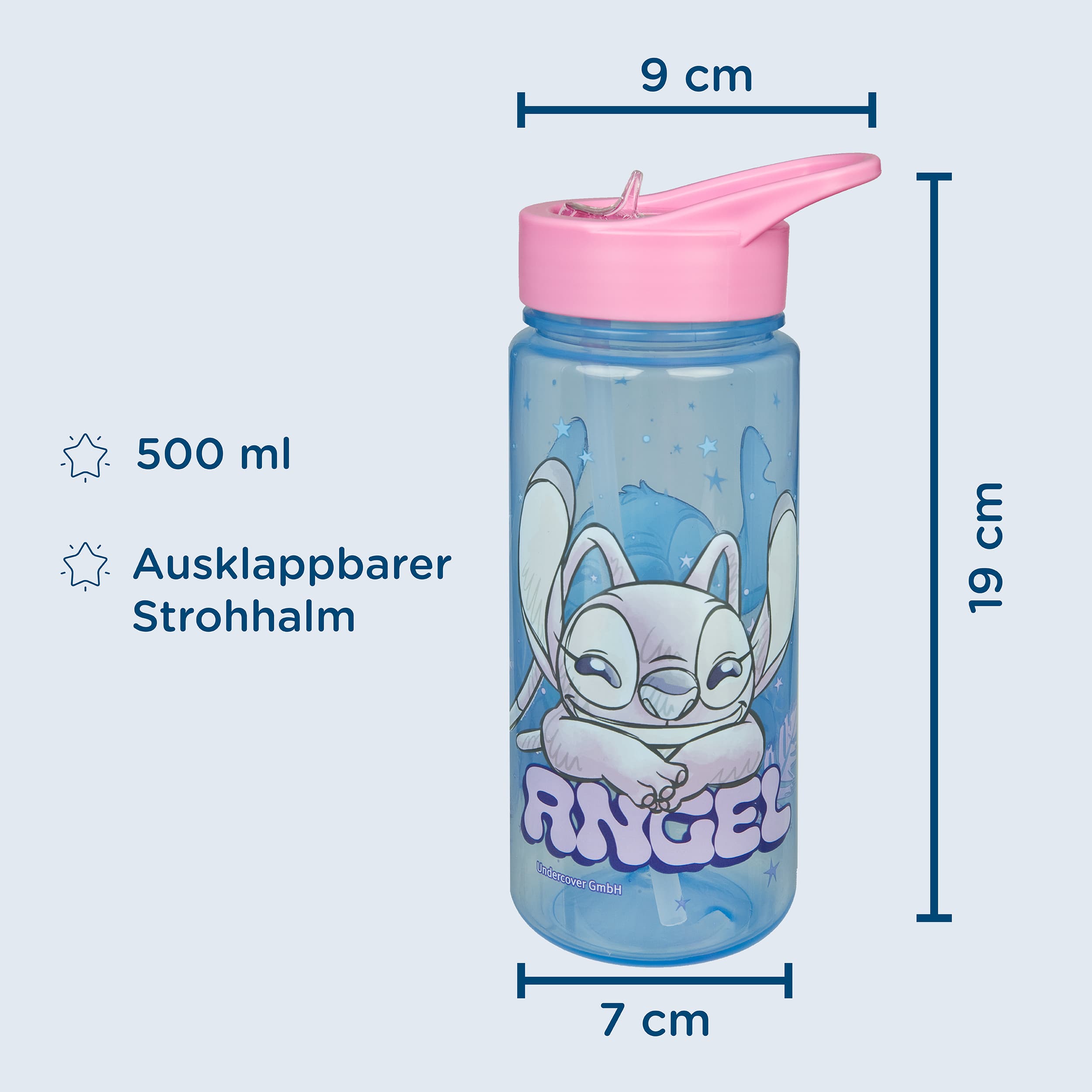 Scooli AERO Kindertrinkflasche mit Stitch Motiv – Trinkspaß für Stitch Fans Ob auf dem Schulweg, im Training oder in der Pause – diese Trinkflasche für Kinder ist der perfekte Begleiter für unterwegs. Der integrierte Trinkhalm ermöglicht ein bequemes und kleckerfreies Trinken, was besonders bei Schul- und Sportaktivitäten praktisch ist. Der auslaufsichere Schraubverschluss schützt vor dem Auslaufen im Schulranzen und lässt sich dank der großen Öffnung schnell und einfach befüllen sowie reinigen. Mit einem Fassungsvermögen von 500 ml bietet die Stitch Trinkflasche genügend Flüssigkeit für einen ganzen Schultag. Sie ist sicher und leicht – perfekt für Kinderhände! Bitte beachten: Nicht für kohlensäurehaltige Getränke und die Spülmaschine geeignet. Produktdetails: - Fassungsvermögen: 500 ml - Maße: Höhe ca. 19 cm | Durchmesser ca. 9 cm - Besonderheiten: Mit Strohhalm, auslaufsicher, leicht zu reinigen