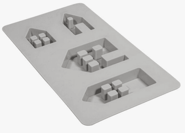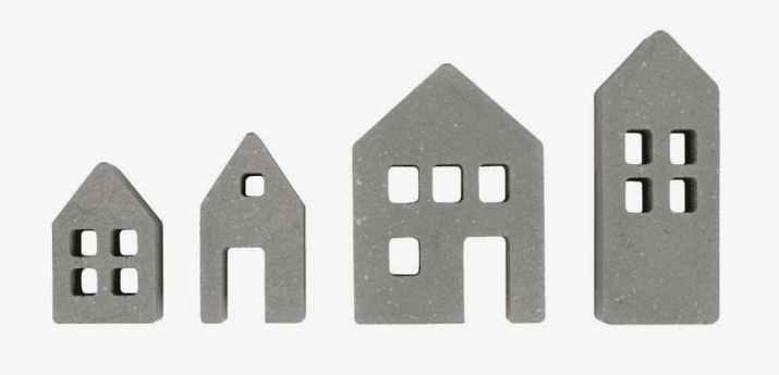 Mit der hochwertigen Silikon-Gießform gelingen vier Häuser, gegossen aus Kreativ-Beton, Schmuck-Beton, Raysin-Gießpulver, Gießharz oder Wachs. (Nicht für Lebensmittel geeignet).