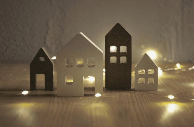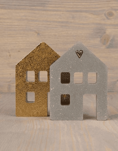 Betonhäuser als Dekoration liegen im Trend. Diese entzückenden DIY- Häuschen schmücken Fensterbank oder Sideboard, hinterlegt mit einer Lichterkette werden sie zum modernen Leuchtobjekt.