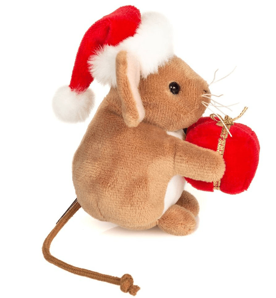 Diese putzige Weihnachtsmaus verzaubert mit ihrem liebevollen Design und sorgt für festliche Stimmung in der Vorweihnachtszeit. Mit ihrem samtweichen, hellbraunen Fell, den großen rosa Öhrchen und den zarten Schnurrhaaren ist sie ein echter Blickfang. Auf dem Kopf trägt sie eine flauschige Weihnachtsmütze, in den kleinen Pfoten hält sie ein detailverliebtes rotes Geschenk mit goldener Schleife. Mit ihren 11 cm eignet sich die Maus ideal als niedlicher Begleiter im Advent, als stimmungsvolle Dekoration oder als kleine Aufmerksamkeit im Nikolausstiefel.