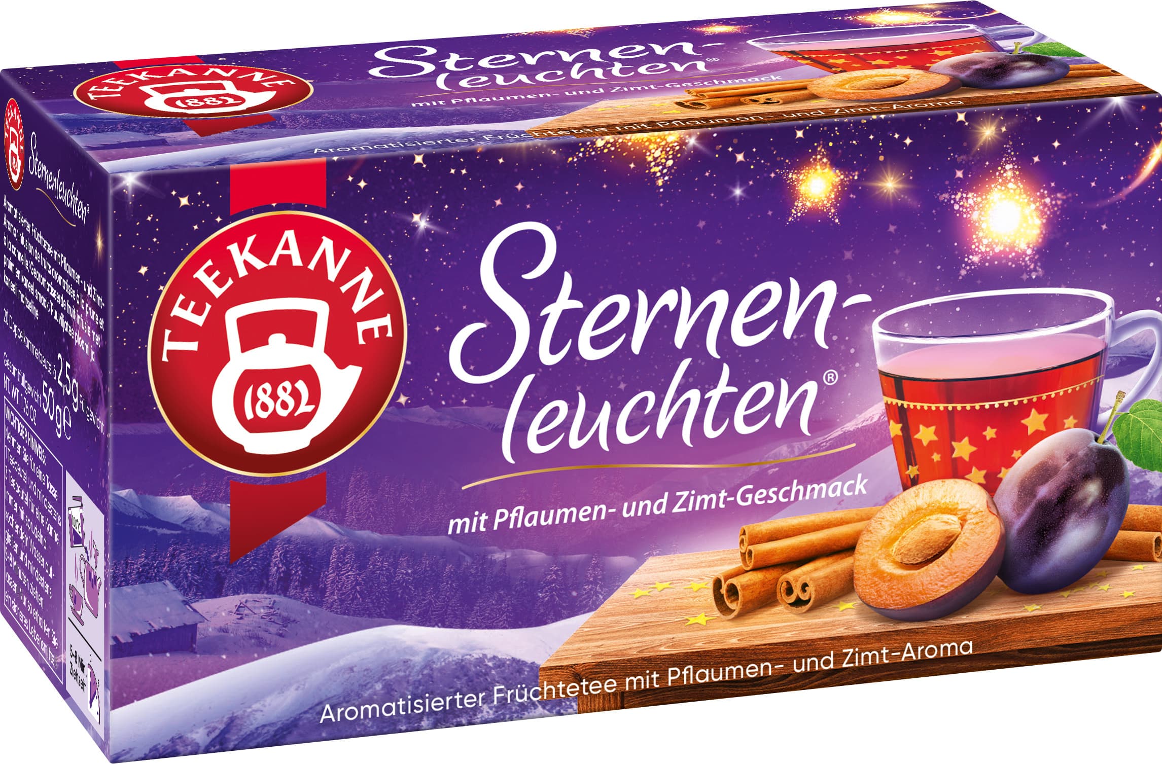 - - Unser TEEKANNE Sternenleuchten Tee verwöhnt Dich mit einem intensiven Früchtetee und dem Geschmack nach kräftigen Pflaumen und süßem Zimt. - Rainforest-Alliance zertifiziert