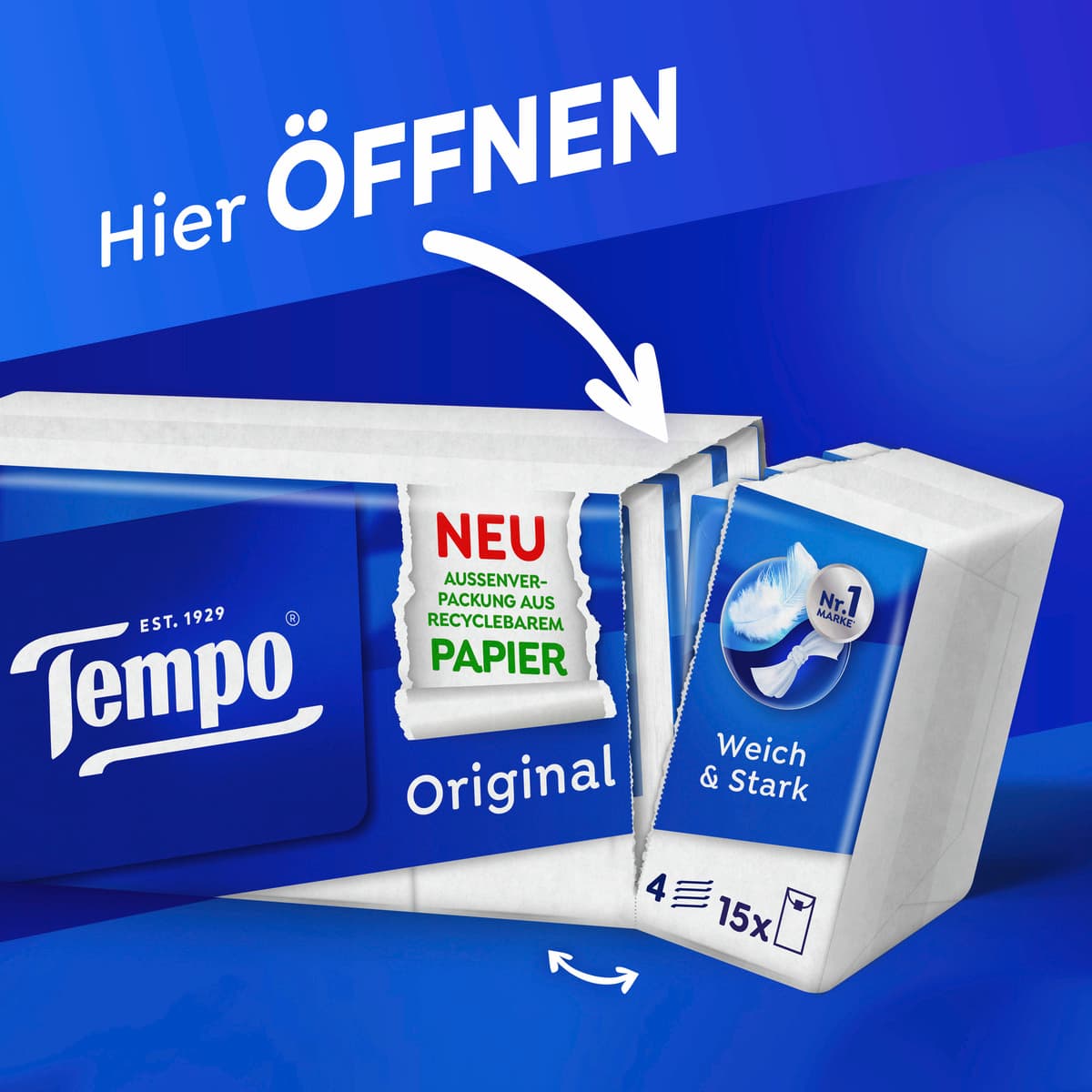 Tempo Taschentücher sind seit 90 Jahren das Synonym für Taschentücher.