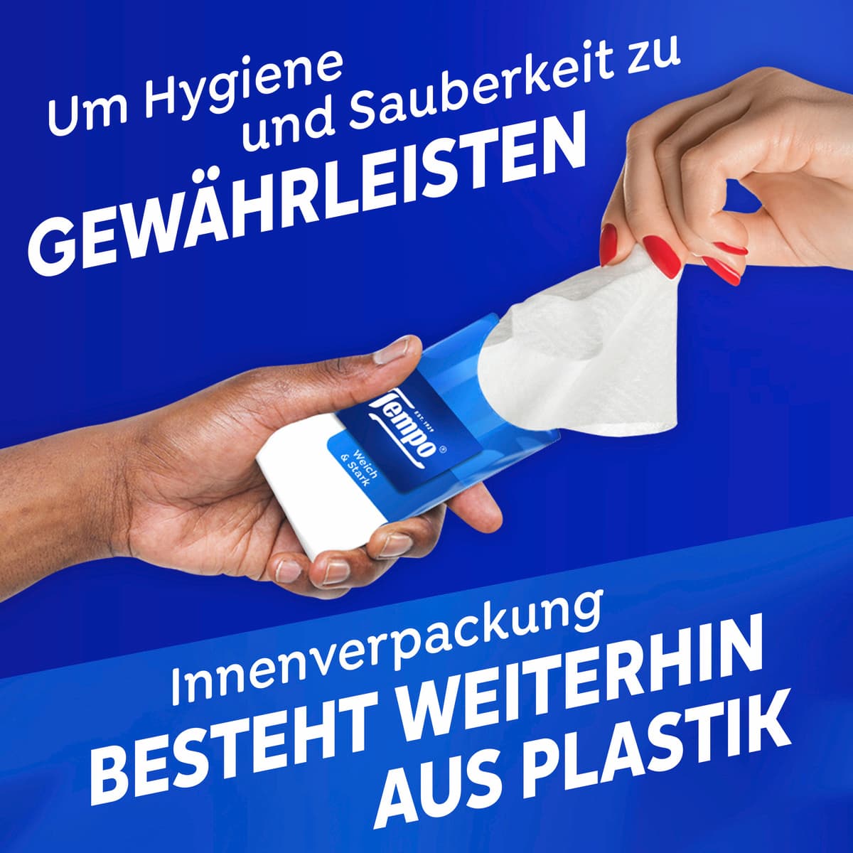 Zudem ist das gesamte Tempo Sortiment waschmaschinenfest. Die praktische Komfortöffnung ermöglicht eine einfache Entnahme der Päckchen aus den Großpacks.