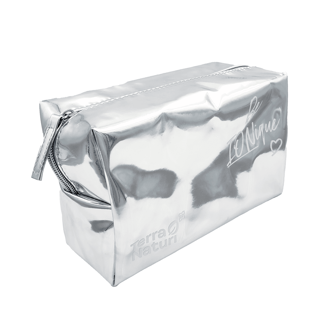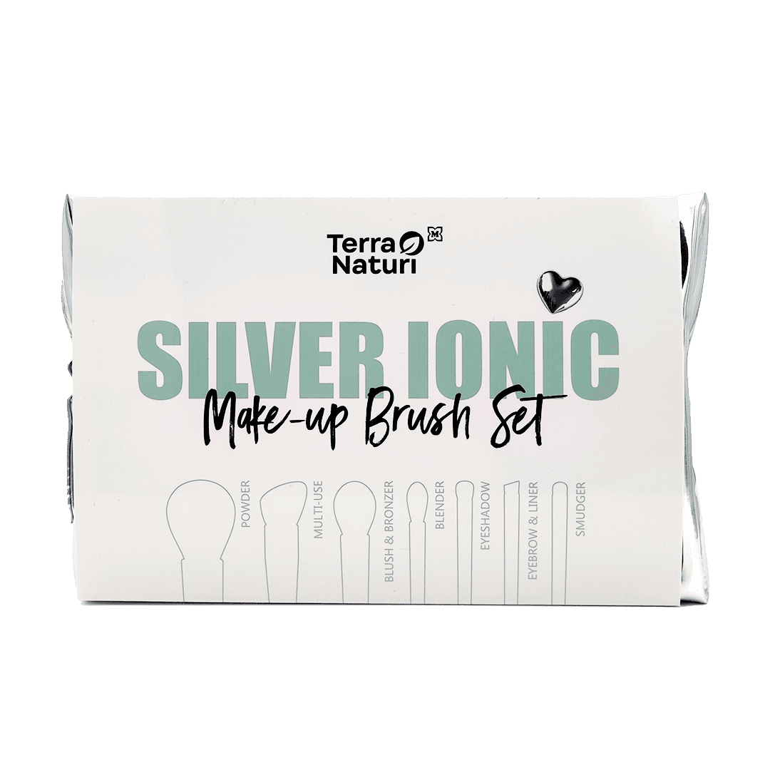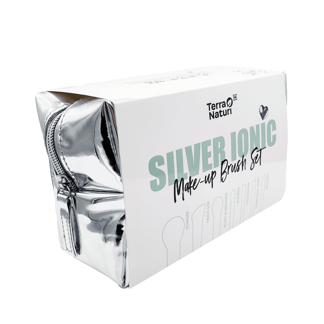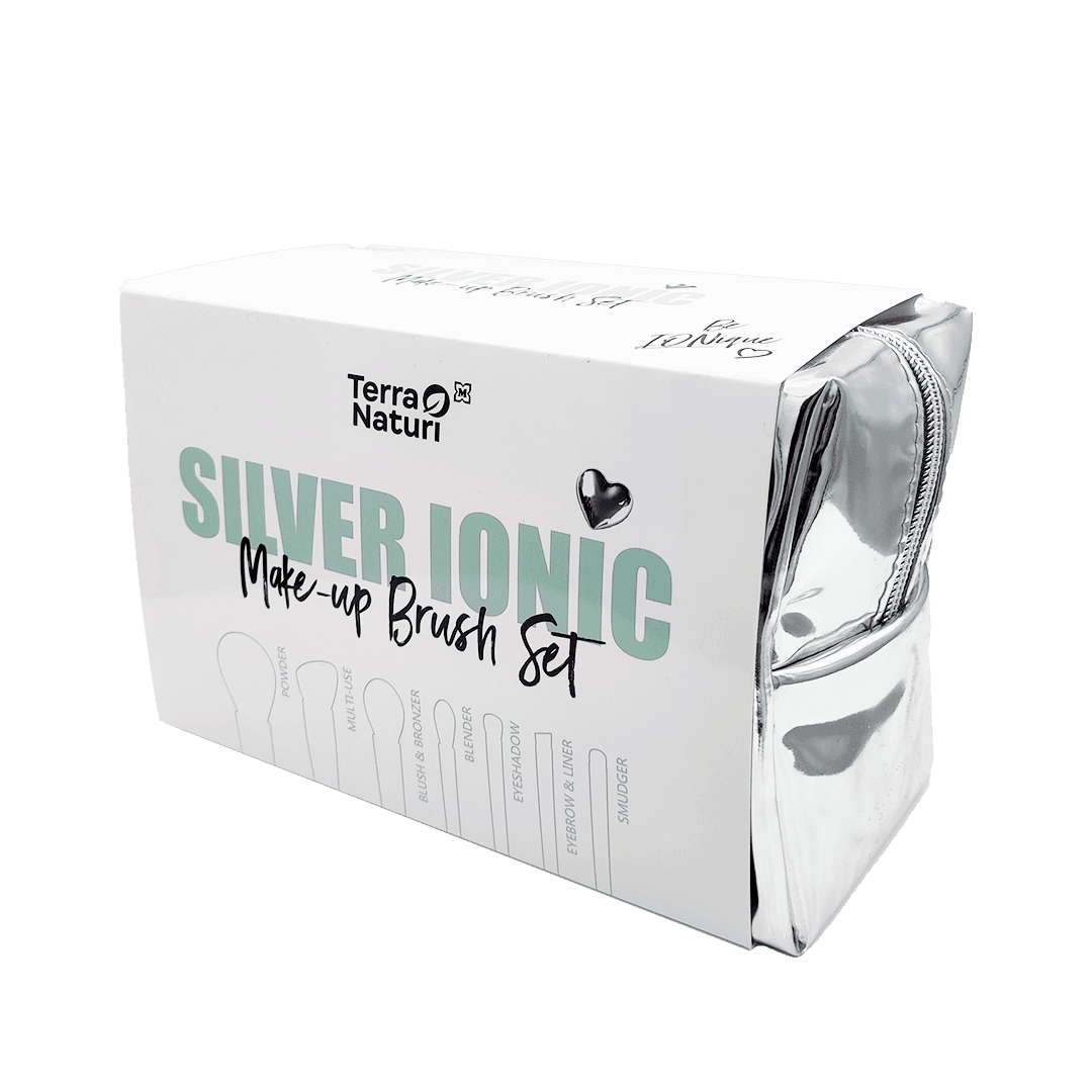 Alles dabei: Die Terra Naturi Silverionic Zippouch enthält 7 hochwertige Pinsel mit Synthetikhaar, Holzgriff und Metallzwinge – ideal für Gesicht und Augen. Praktisch verpackt in einer stylischen silbernen PU-Tasche mit Reißverschluss – perfekt für zuhause oder unterwegs.