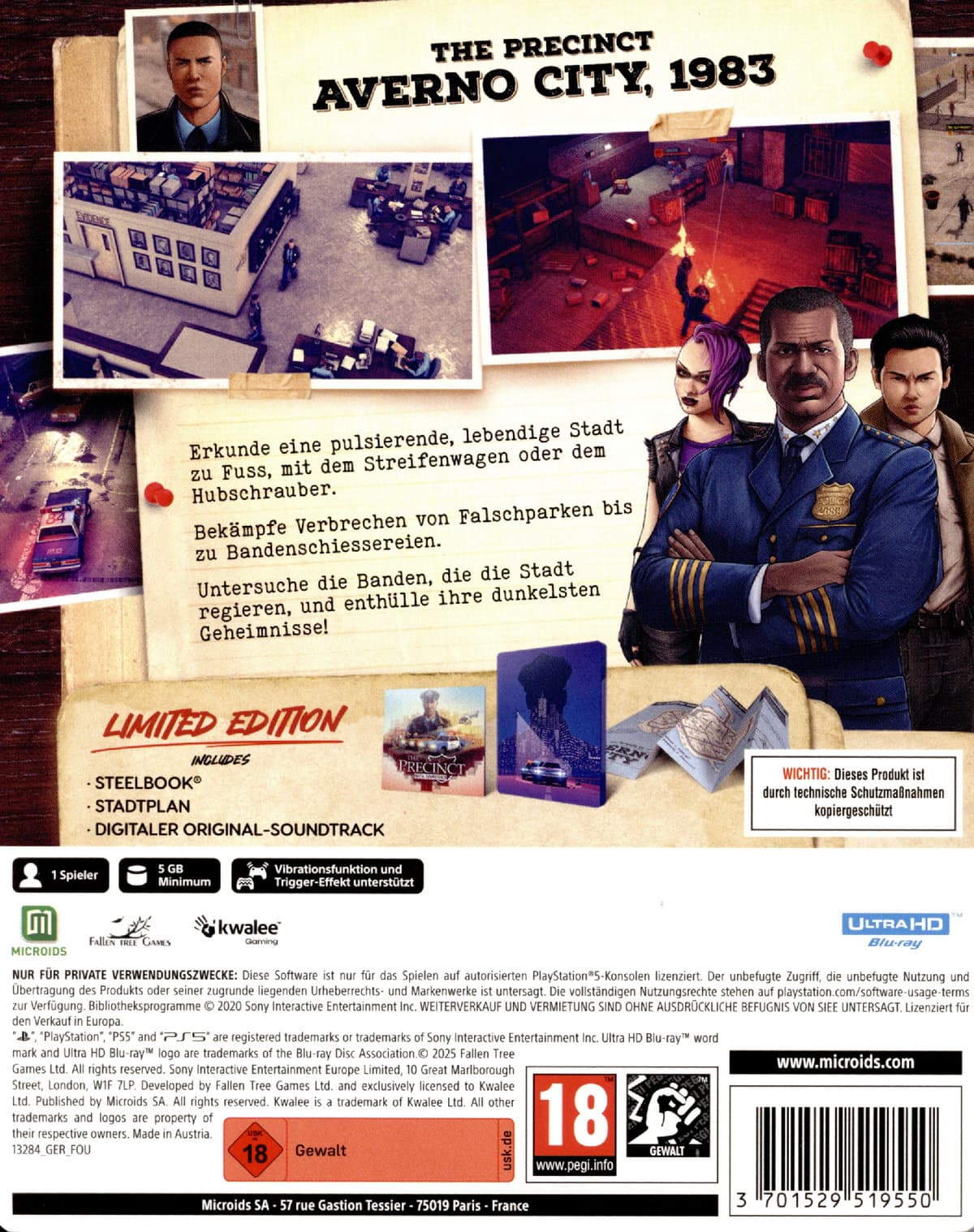 Ein Liebesbrief an klassische Polizeifilme. The Precinct kombiniert Polizeisimulationen mit einer extravaganten Action-Sandbox. Patrouilliere auf den Straßen Avernos und achte auf Hilferufe, um Klein- und Großkriminelle aufzuhalten. Wähle deine Taktiken in aufregenden Verfolgungsjagden und Schussgefechten. Nimm Einfluss auf das Machtverhältnis zwischen den Banden in Averno - einer lebendigen Stadt mit Sandbox-Verbrechen, darunter Parkverstöße, Banküberfälle, Straßenrennen und Drogenhandel.
