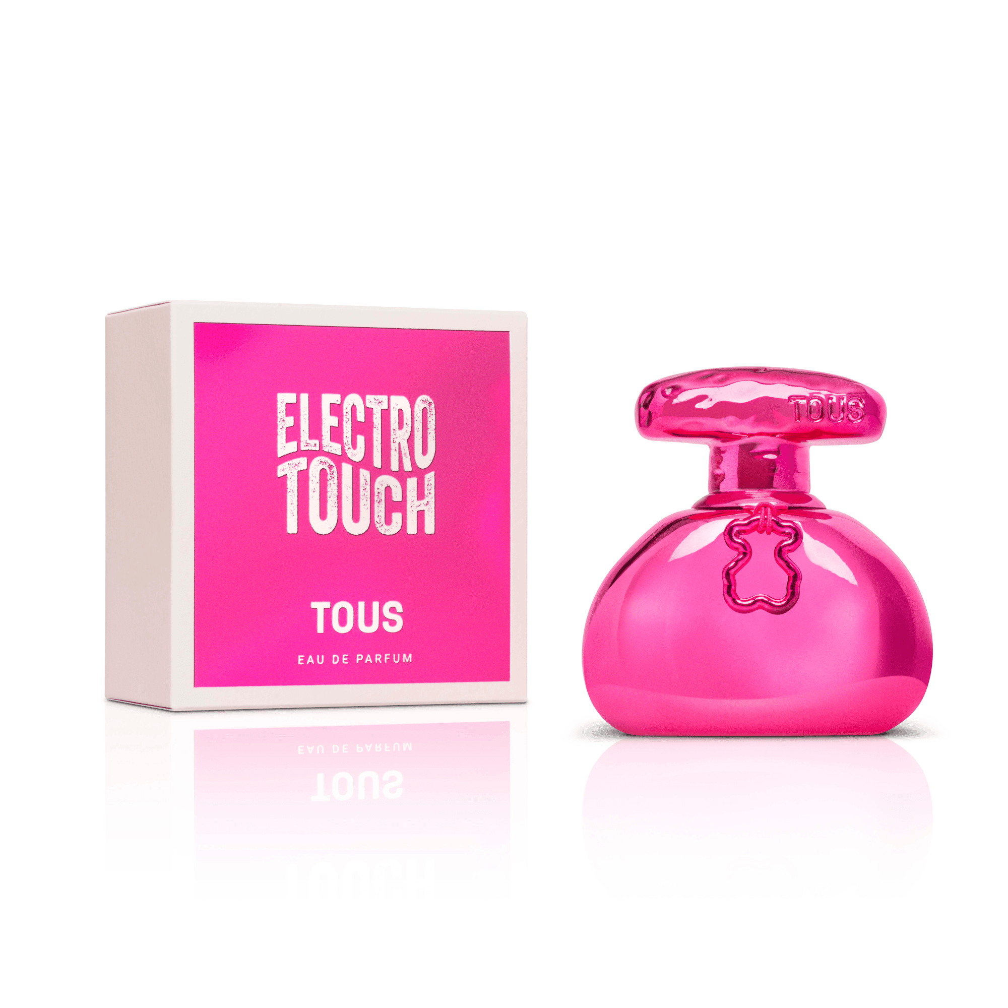ELECTROTOUCH ist ein blumiges warmes Eau de Parfum, das die natürliche Persönlichkeit einer Frau begleitet, die weiß, dass sie aufgrund ihrer Energie im Mittelpunkt steht. Der ELECTROTOUCH-Flakon zeigt sich von seiner modernsten Seite und präsentiert sich in KNALL PINK! Er ist ambivalent, seine runde und warme Form spielt mit dem kalten Metall, aus dem er gefertigt ist. Der TOUS-Bär ist als Anhänger in ElectroPink das Highlight. Das ELECTROTOUCH-Packaging überrascht mit seinem Metallic-Finish, auf dem keine Fingerabdrücke zurückbleiben. Der Name des Duftes wird mit einer lustigen und lässigen Typografie, in der die Buchstaben größer und kleiner werden, als wären sie eine elektromagnetische Wellenlänge, gezeigt. Traut ihr euch es zu öffnen?