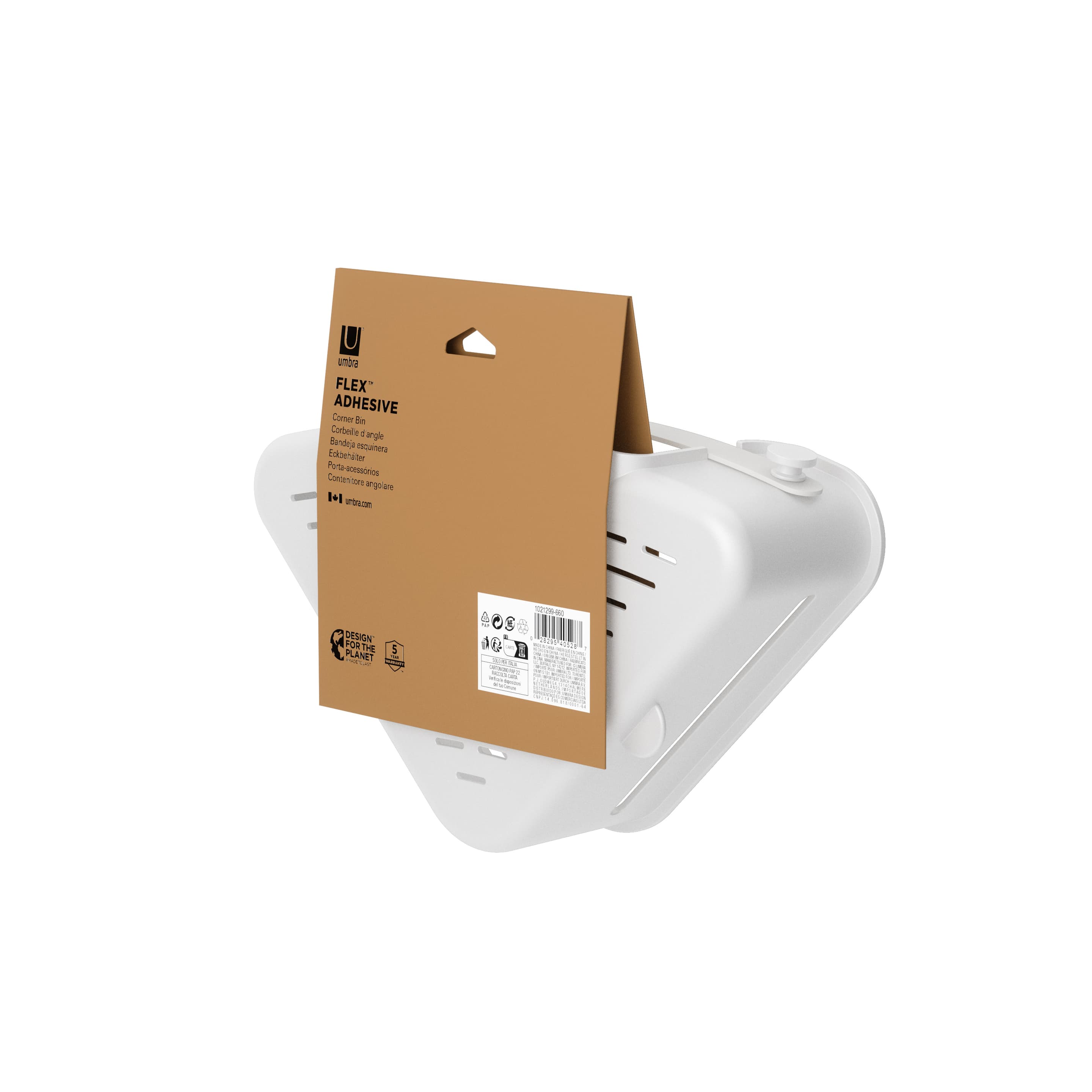 Das Flex Eckregal macht Gebrauch von ungenutztem Platz in Ihrer Dusche und hält all Ihre wichtigen Duschutensilien griffbereit. Die einfach zu installierende Flex Eckduschablage zum Kleben enthält abziehbare, wasserfeste Klebestreifen, die auf verschiedenen Oberflächen wie Fliesen, Rigipswänden, Beton usw. angebracht werden können (funktioniert nicht auf porösen Oberflächen). Das Eckregal verfügtüber eine integrierte Seifenschale, Platz für Shampoo, Spülung, Duschmittel, Rasierer und zwei Haken für Duschschwamm und Waschlappen. Bei Bedarf lässt sich das Eckregal leicht entfernen und an einen anderen Ort bringen. Größe: 32,5x19x9 cm. Teil der Umbra Flex Bad Kollektion zum Kleben. Zu 85% aus recyceltem Kunststoff hergestellt.