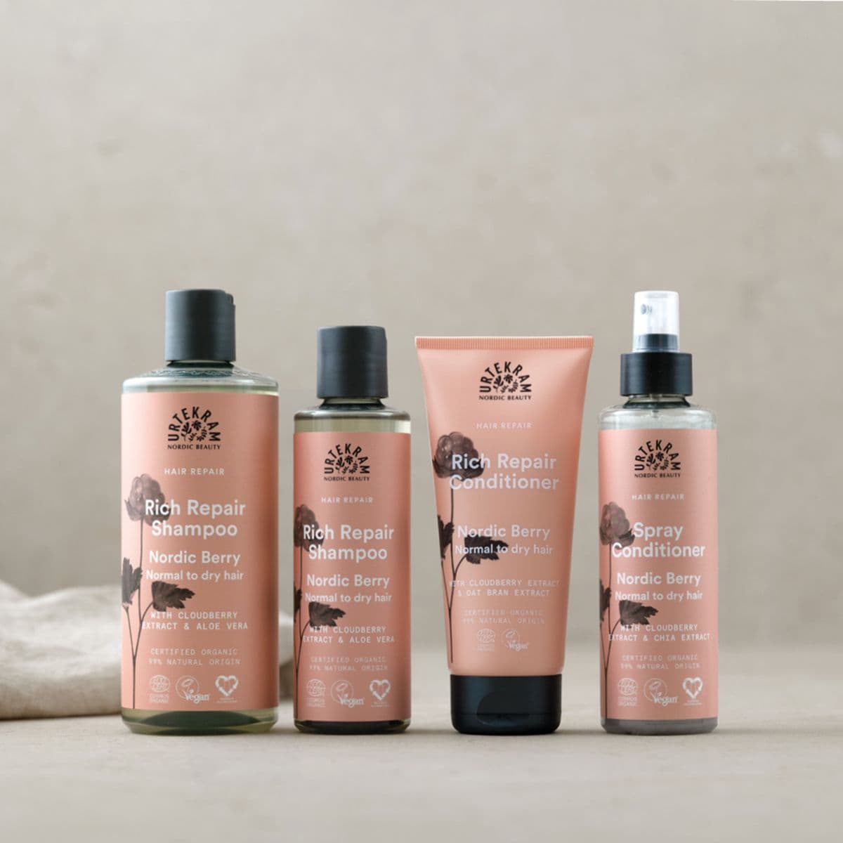 Der Nordic Berry Rich Repair Conditioner von URTEKRAM ist eine Pflege für das Haar, die für eine leichtere Kämmbarkeit sorgt. Die Formulierung eignet sich für normales bis trockenes Haar.