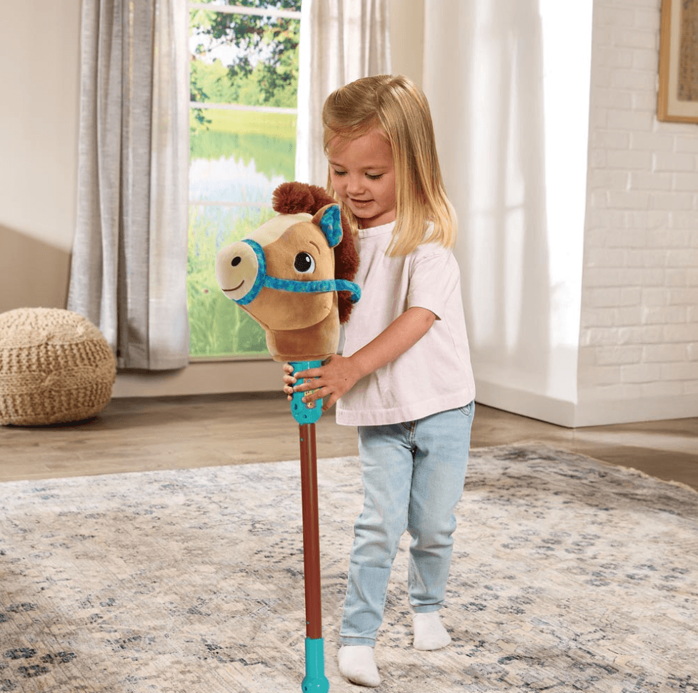 Kuscheliges Steckenpferd mit Plüschkopf für Reiterhof-Abenteuer im Kinderzimmer mit einer