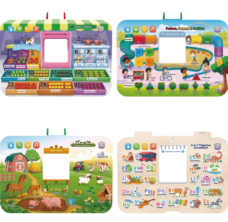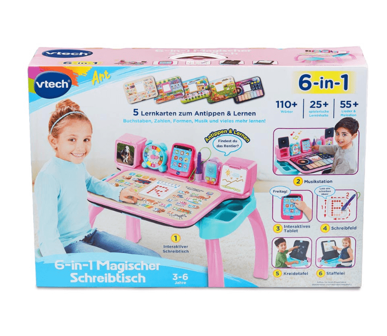 Der perfekte Lern- und Spielbegleiter für Vorschulkinder! Der interaktive 6-in-1 Magische Schreibtisch von VTech bietet eine vielseitige Kombination aus Lernen, Musik und Kreativität. Mit 5 interaktiven Lernkarten, einem animierten LED-Bildschirm und einem interaktiven Stift lernen Kinder spielerisch Buchstaben, Zahlen, Formen, Farben und Gefühle kennen.