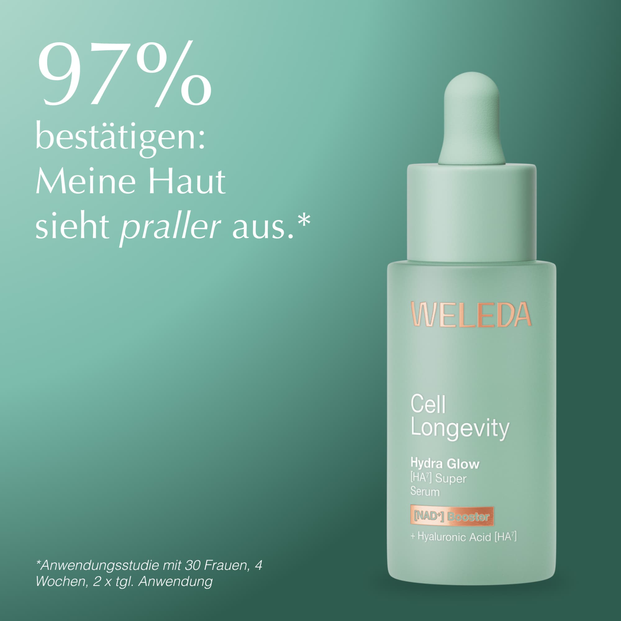Verwöhne deine Haut mit dem Cell Longevity Hydra Glow [HA7] Super Serum – einem hochwirksamen, leichten Serum, das deine Haut sichtbar praller und glatter macht: Der enthaltene innovative [NAD+] Booster kehrt den Hautalterungsprozess auf Zellebene um und fördert die Hautverjüngung aktiv. Dank Hyaluronsäure mit 7 verschiedenen Molekulargewichten spendet das Serum sofort intensiv Feuchtigkeit und speichert sie bis zu 72 Stunden. Deine Haut fühlt sich nach der Anwendung frisch und geschmeidig an und hat einen lebendigen, gesunden Glow.