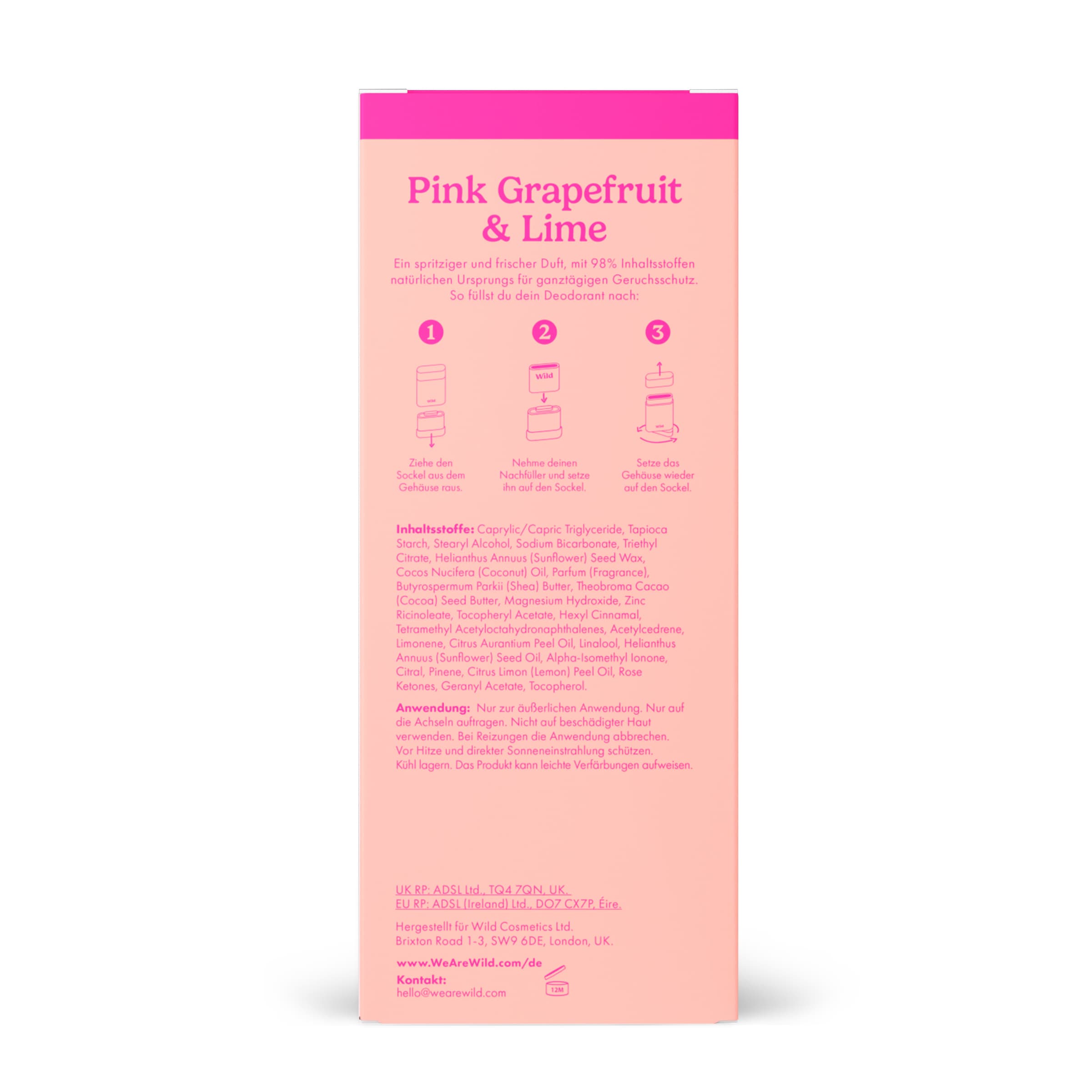 Die Formel des Deodorants ist für alle Hauttypen geeignet und verzichtet auf den Einsatz von Plastik bei den Nachfüllpackungen. Die Anwendung ist einfach und sorgt für ein langanhaltendes Frischegefühl. Der Duft nach Pink Grapefruit begleitet angenehm durch den Tag. Dank des nachfüllbaren Systems wird unnötiger Verpackungsmüll reduziert.