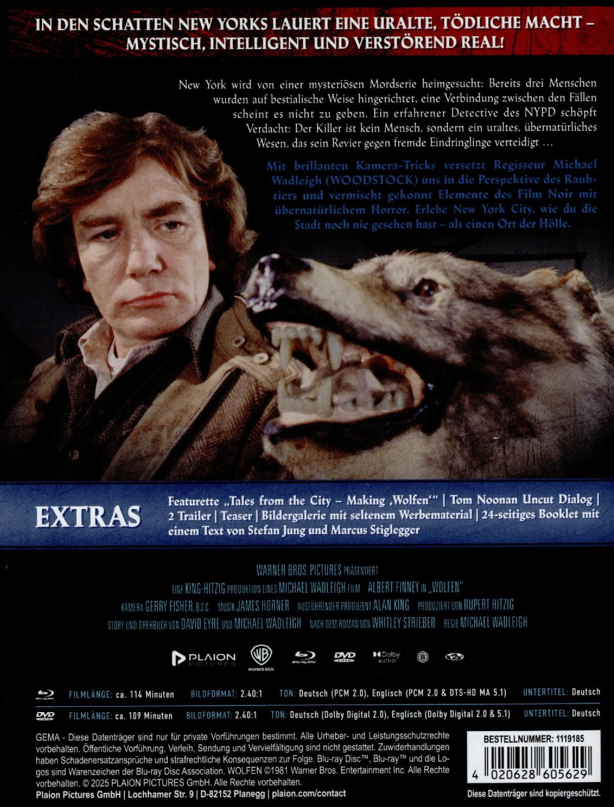 | Zusatzinfos / Bonusmaterial beim Film dabei | Featurette Tales from the City – Making Wolfen, Tom Noonan Uncut Dialog, Trailer, Teaser, Bildergalerie, Booklet |