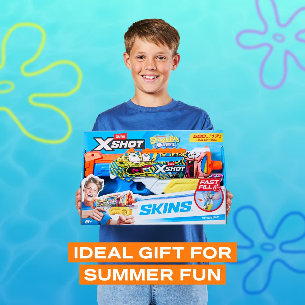 Mach dich bereit für Wasserspaß im Bikini Bottom-Style mit dem XSHOT Water Spongebob Hyperload Wasserblaster von ZURU – das ultimative Spongebob-Wasserspielzeug für Kinder, Jugendliche und Erwachsene! Dieser High-Performance Wasserblaster verfügt über XSHOTs charakteristische Fast Fill Technologie, mit der du ihn in nur einer Sekunde nachfüllen kannst. Einfach eintauchen, füllen und mit dem schnellen Verschluss-Design schließen, damit du sofort zurück ins Battle springen kannst. Das ikonische Spongebob Design sorgt für Spaß und macht diesen Wasserblaster zum Highlight bei jeder Wasserschlacht. Perfekt für Action gebaut, liefert er kraftvolle Wasserstrahls mit bis zu 10 Metern Reichweite – ideal zum Nassspritzen von Freunden am Pool, am Strand oder in deinem Garten. Der 500 ml Wassertank bedeutet, dass du länger spielen kannst ohne ständig nachzufüllen, und das leichte Design macht es einfach für Kinder ab 5 Jahren zu handhaben. Ob du an der Seite von Freunden spielst, eine epische Spongebob-Themenparty veranstaltest oder einfach nur nach einer lustigen Art suchst, dich abzukühlen, der XSHOT Spongebob Hyperload Wasserblaster von ZURU ermöglicht schnelles Nachfüllen und endlosen Sommerspaß. Mach dich bereit, ziele und sorge für Furore!