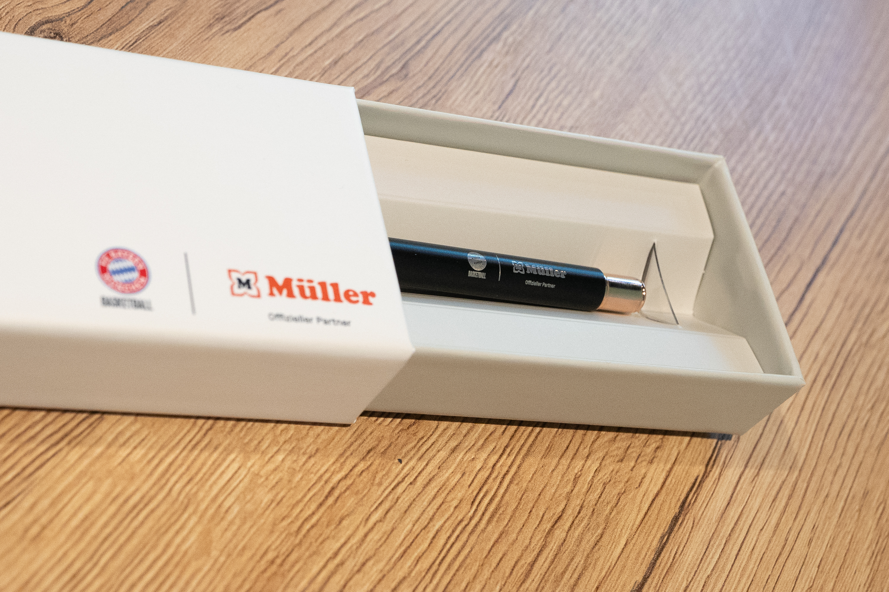 Beim offiziellen Auftakt standen Adrian Sarmiento (Kaufmännischer Geschäftsführer, FC Bayern Basketball), Sebastian Ferschl (Head of Business Strategy, FC Bayern Basketball) und Sascha Zahner (Einkaufsleitung Spiel- und Schreibwaren, Nachhaltigkeit & Prozesse, Handelskonzern Müller) stellvertretend auf dem Parkett. Symbolisch wurde die Kooperation mit einem exklusiven „FC Bayern Basketball & Müller“ Schreibgerät von Faber-Castell besiegelt – ein markantes Zeichen für die gemeinsame Mission „Play & Create“.